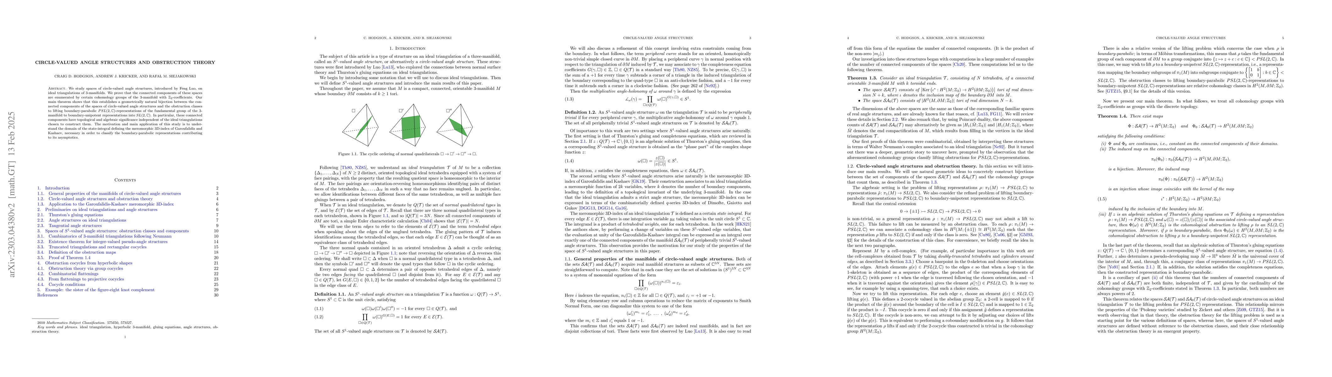 This paper investigates spaces of circle-valued angle structures on 3-manifolds, proving that their connected components correspond to certain $\mathbb{Z}_2$ cohomology groups. It establishes a natural bijection between these components and obstruction classes for lifting boundary-parabolic $PSL(2,\mathbb{C})$ representations to boundary-unipotent $SL(2,\mathbb{C})$ representations.