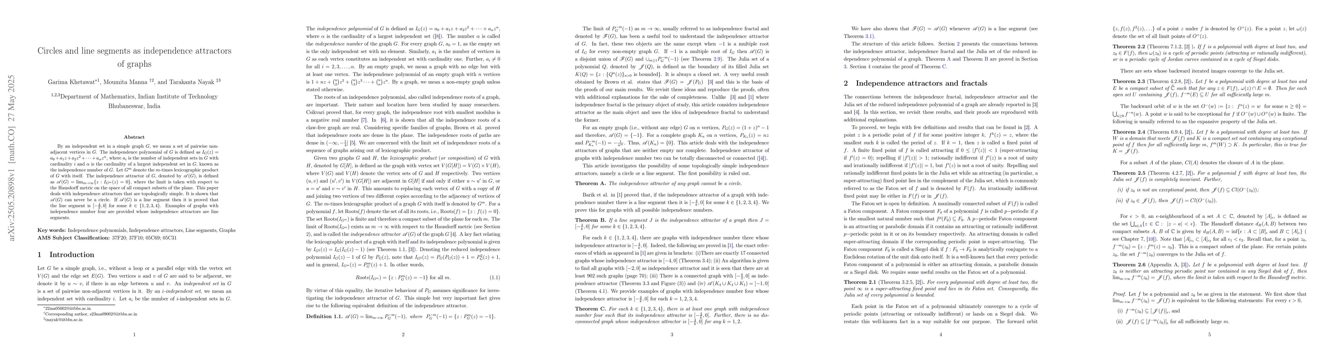 The paper investigates independence attractors of graphs, which relate to sets of non-adjacent vertices, finding that these attractors can never be a circle but always form a line segment within specific ranges.