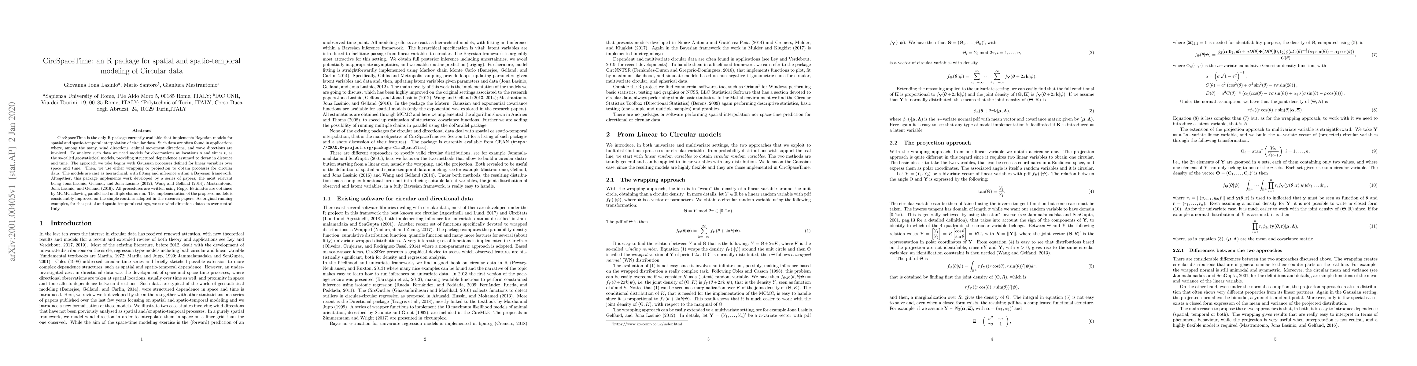 CircSpaceTime is an R package for Bayesian spatial and spatio-temporal modeling of circular data, such as wind directions, using Gaussian processes and hierarchical modeling. It employs MCMC for inference and improves upon previous research implementations.