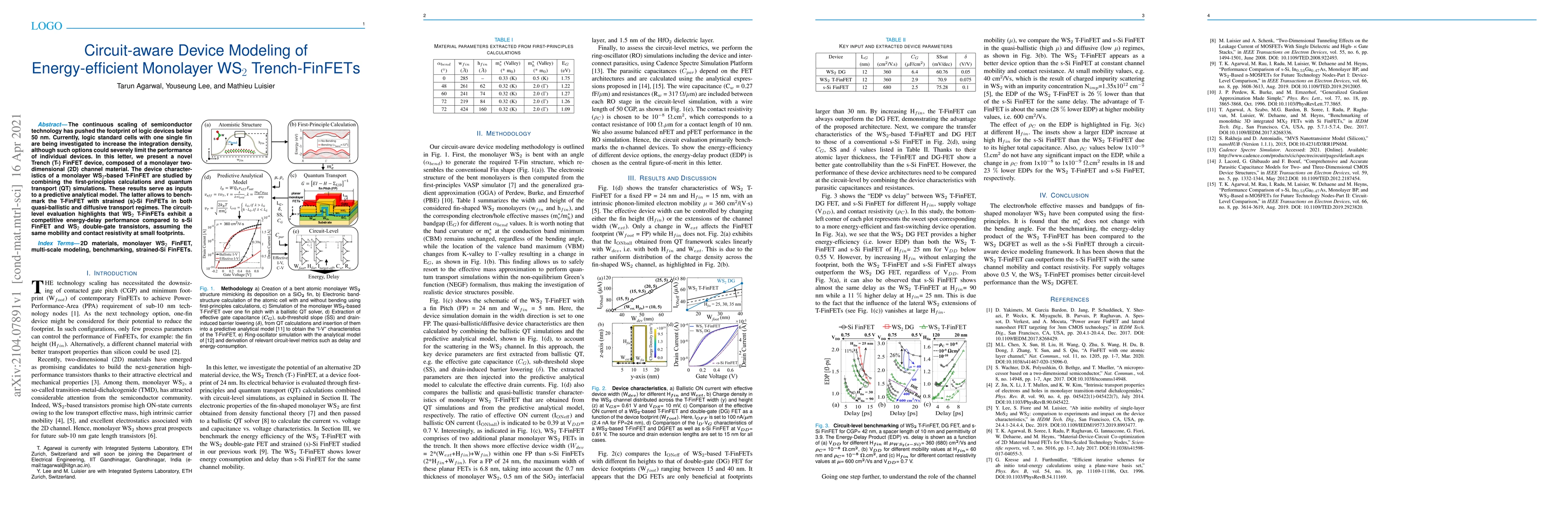 Researchers developed a new type of transistor using monolayer WS$_2$ material, showing competitive energy-delay performance compared to traditional silicon FinFETs.