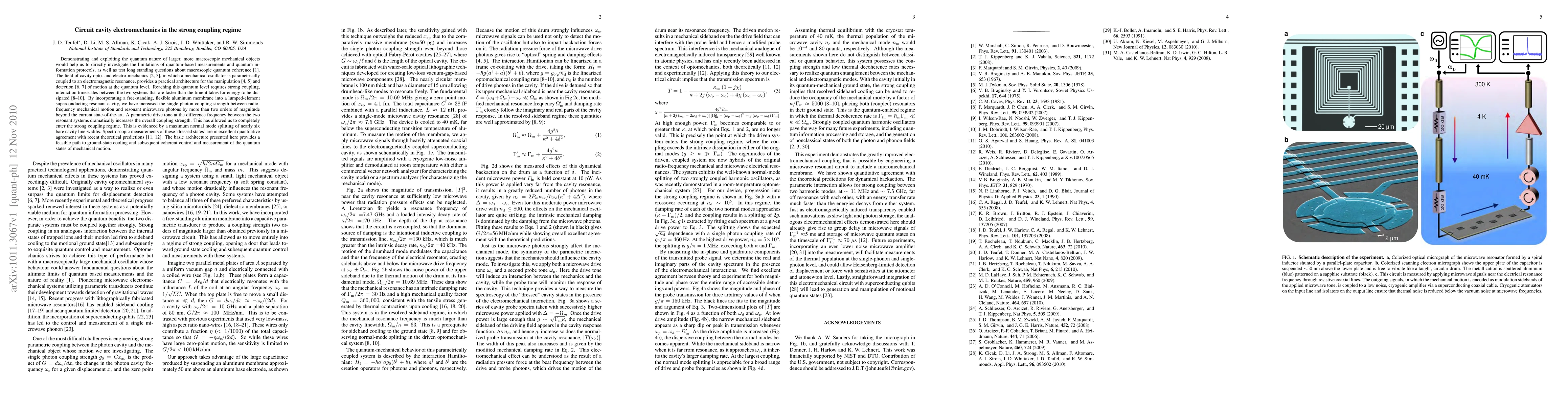 This paper demonstrates a significant enhancement in the coupling strength between radio-frequency mechanical motion and resonant microwave photons, achieving strong coupling regime entry with a maximum normal mode splitting of nearly six cavity linewidths. The architecture provides a pathway to ground-state cooling and coherent control of mechanical quantum states.