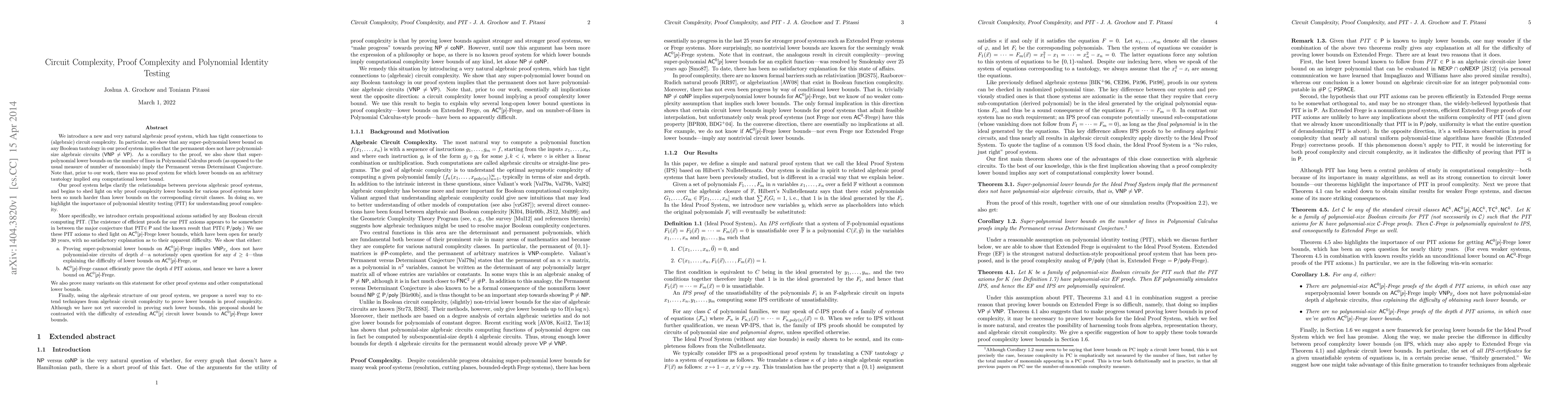 We introduce a new algebraic proof system, which has tight connections to (algebraic) circuit complexity. In particular, we show that any super-polynomial lower bound on any Boolean tautology in our proof system implies that the permanent does not have polynomial-size algebraic circuits (VNP is not equal to VP). As a corollary to the proof, we also show that super-polynomial lower bounds on the number of lines in Polynomial Calculus proofs (as opposed to the usual measure of number of monomials) imply the Permanent versus Determinant Conjecture. Note that, prior to our work, there was no proof system for which lower bounds on an arbitrary tautology implied any computational lower bound. Our proof system helps clarify the relationships between previous algebraic proof systems, and begins to shed light on why proof complexity lower bounds for various proof systems have been so much harder than lower bounds on the corresponding circuit classes. In doing so, we highlight the importance of polynomial identity testing (PIT) for understanding proof complexity. More specifically, we introduce certain propositional axioms satisfied by any Boolean circuit computing PIT. We use these PIT axioms to shed light on AC^0[p]-Frege lower bounds, which have been open for nearly 30 years, with no satisfactory explanation as to their apparent difficulty. We show that either: a) Proving super-polynomial lower bounds on AC^0[p]-Frege implies VNP does not have polynomial-size circuits of depth d - a notoriously open question for d at least 4 - thus explaining the difficulty of lower bounds on AC^0[p]-Frege, or b) AC^0[p]-Frege cannot efficiently prove the depth d PIT axioms, and hence we have a lower bound on AC^0[p]-Frege. Using the algebraic structure of our proof system, we propose a novel way to extend techniques from algebraic circuit complexity to prove lower bounds in proof complexity.