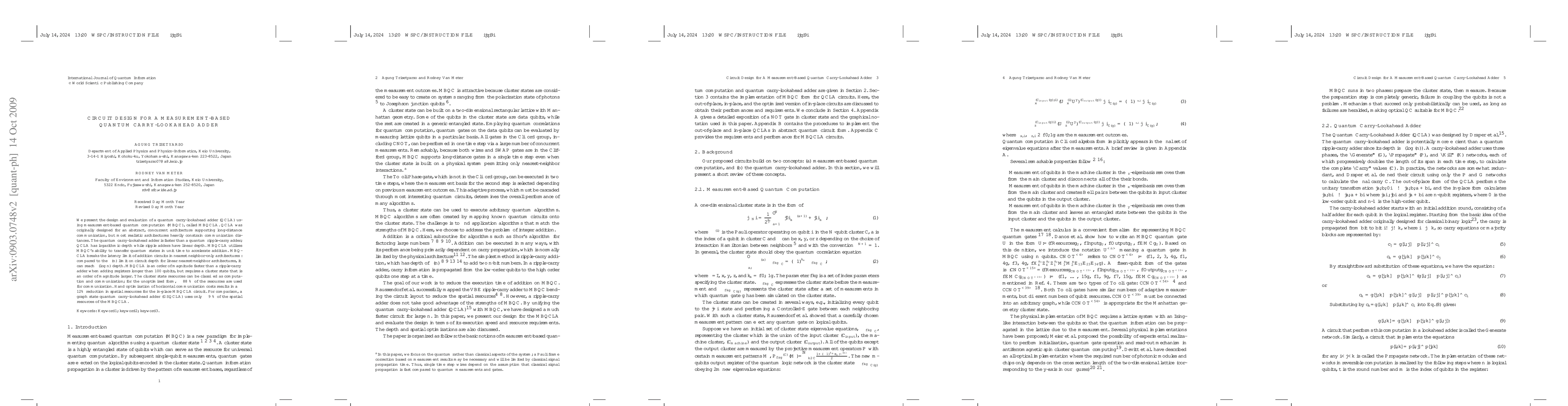 This paper designs a quantum carry-lookahead adder (QCLA) using measurement-based quantum computation (MBQC) to achieve logarithmic depth addition, significantly faster than a quantum ripple-carry adder. The optimized MBQCLA reduces communication costs by 12%, though it still requires a large cluster state for resources.