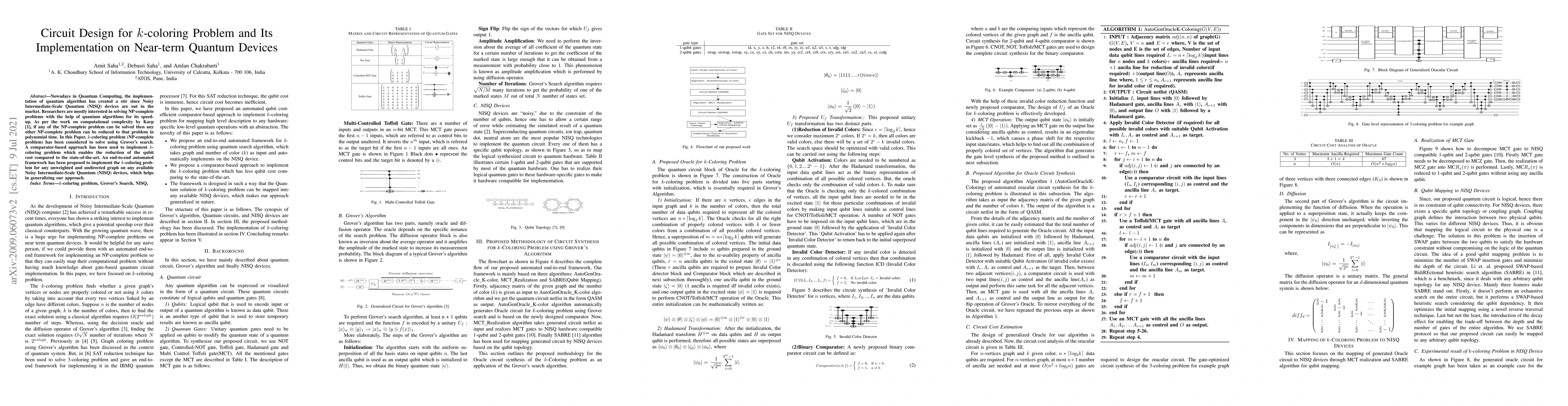 Proposed an automated end-to-end framework for mapping k-coloring problems to NISQ devices, reducing dataqubit cost and improving query complexity
