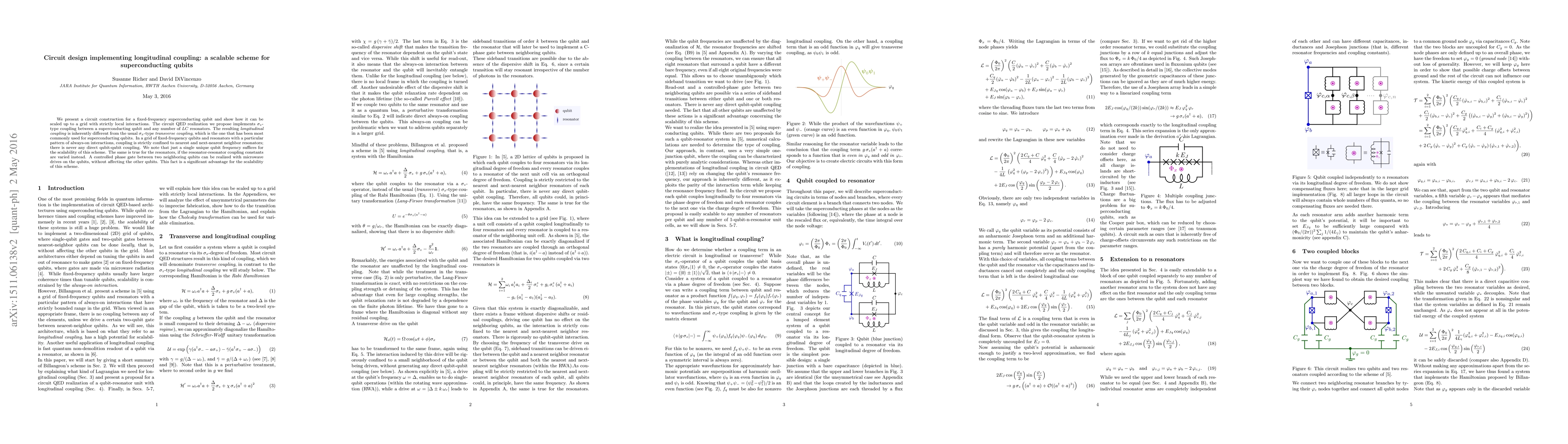 We present a circuit construction for a new fixed-frequency superconducting qubit and show how it can be scaled up to a grid with strictly local interactions. The circuit QED realization we propose implements $\sigma_z$-type coupling between a superconducting qubit and any number of $LC$ resonators. The resulting \textit{longitudinal coupling} is inherently different from the usual $\sigma_x$-type \textit{transverse coupling}, which is the one that has been most commonly used for superconducting qubits. In a grid of fixed-frequency qubits and resonators with a particular pattern of always-on interactions, coupling is strictly confined to nearest and next-nearest neighbor resonators; there is never any direct qubit-qubit coupling. We note that just four distinct resonator frequencies, and only a single unique qubit frequency, suffice for the scalability of this scheme. A controlled phase gate between two neighboring qubits can be realized with microwave drives on the qubits, without affecting the other qubits. This fact is a supreme advantage for the scalability of this scheme.