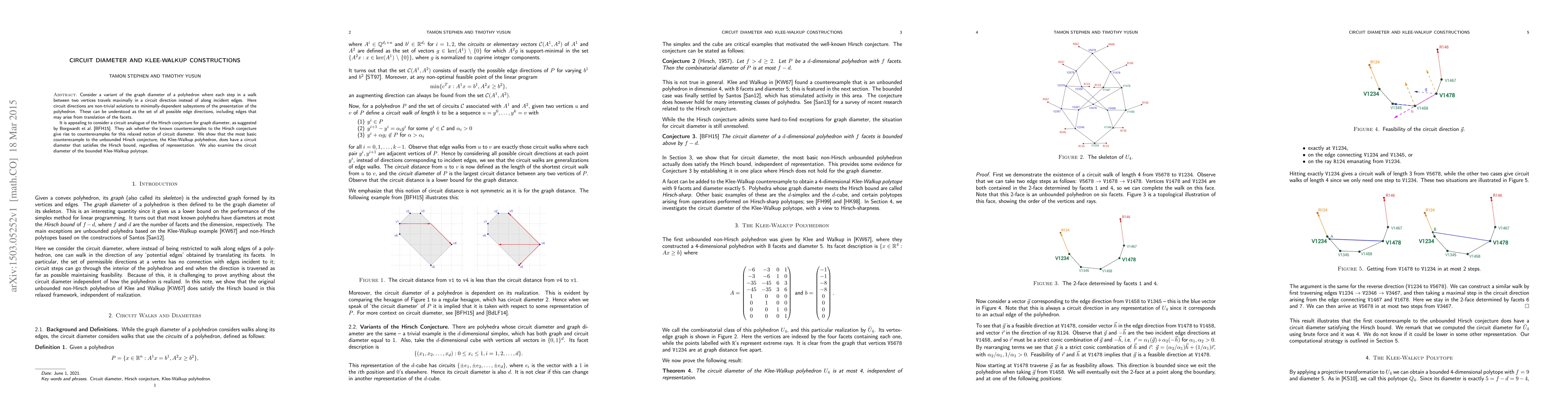 The paper investigates a variant of graph diameter that considers circuit directions, showing that a basic counterexample to the Hirsch conjecture has a circuit diameter satisfying the Hirsch bound, with implications for understanding graph diameters.