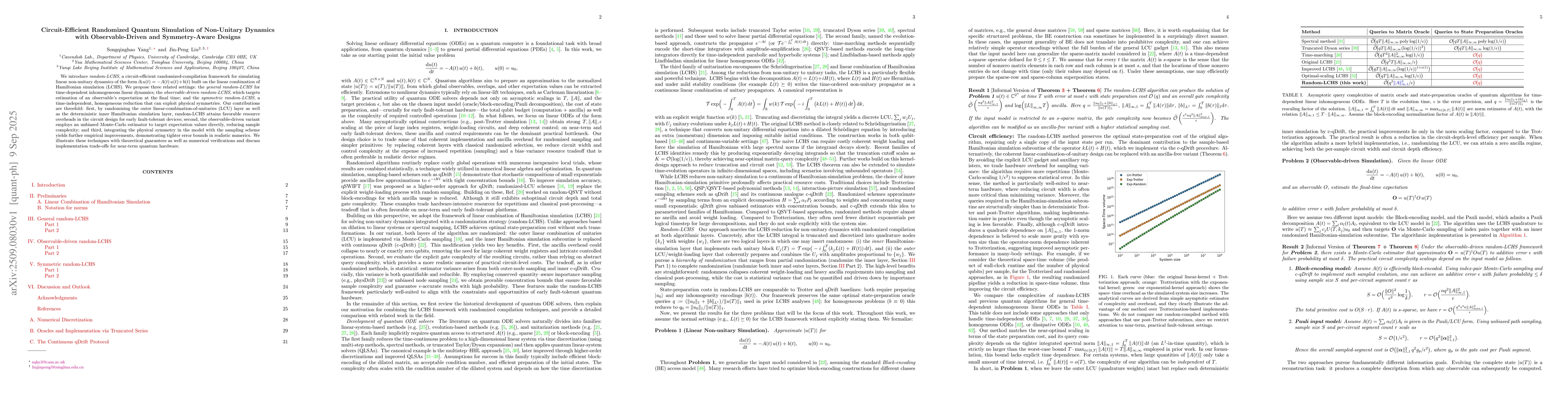 We introduce random-LCHS, a circuit-efficient randomized-compilation framework for simulating linear non-unitary dynamics of the form $\partial_t u(t) = -A(t) u(t) + b(t)$ built on the linear combination of Hamiltonian simulation (LCHS). We propose three related settings: the general random-LCHS for time-dependent inhomogeneous linear dynamics; the observable-driven random-LCHS, which targets estimation of an observable's expectation at the final time; and the symmetric random-LCHS, a time-independent, homogeneous reduction that can exploit physical symmetries. Our contributions are threefold: first, by randomizing the outer linear-combination-of-unitaries (LCU) layer as well as the deterministic inner Hamiltonian simulation layer, random-LCHS attains favorable resource overheads in the circuit design for early fault-tolerant devices; second, the observable-driven variant employs an unbiased Monte-Carlo estimator to target expectation values directly, reducing sample complexity; and third, integrating the physical symmetry in the model with the sampling scheme yields further empirical improvements, demonstrating tighter error bounds in realistic numerics. We illustrate these techniques with theoretical guarantees as well as numerical verifications and discuss implementation trade-offs for near-term quantum hardware.