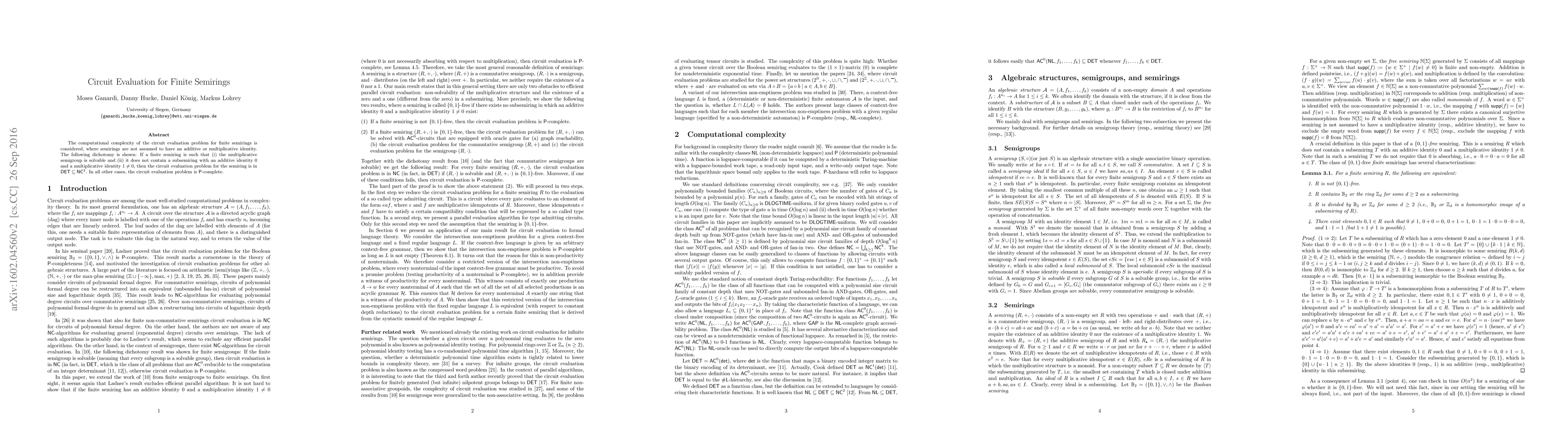 The paper shows that for finite semirings with specific properties, circuit evaluation can be done in polynomial time, while for others it is P-complete, highlighting the complexity of this problem in algebraic structures.
