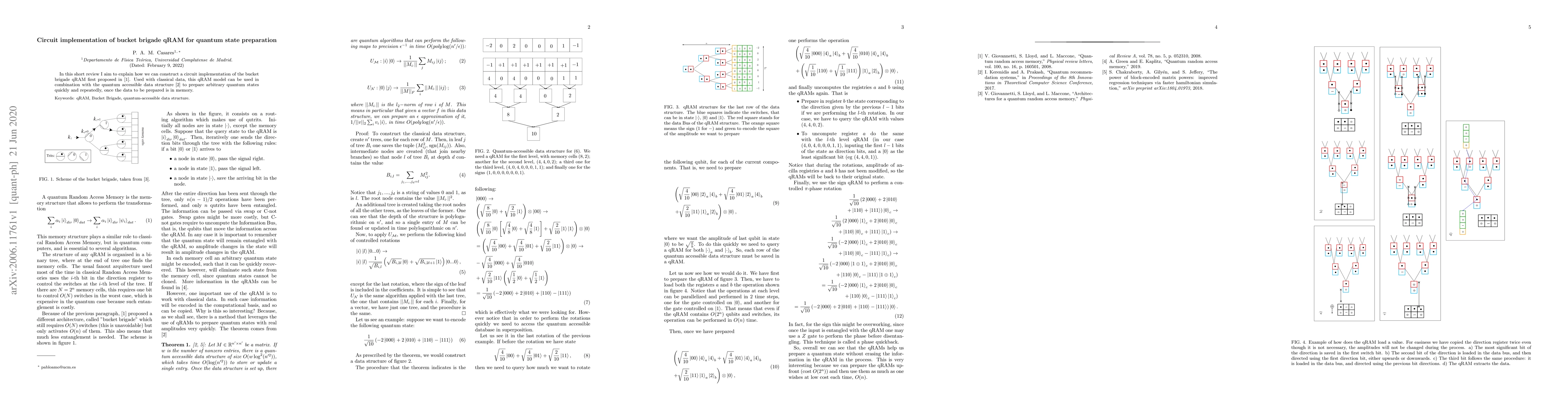 In this short review I aim to explain how we can construct a circuit implementation of the bucketbrigade qRAM first proposed in [1]. Used with classical data, this qRAM model can be used incombination with the quantum accessible data structure [2] to prepare arbitrary quantum statesquickly and repeatedly, once the data to be prepared is in memory