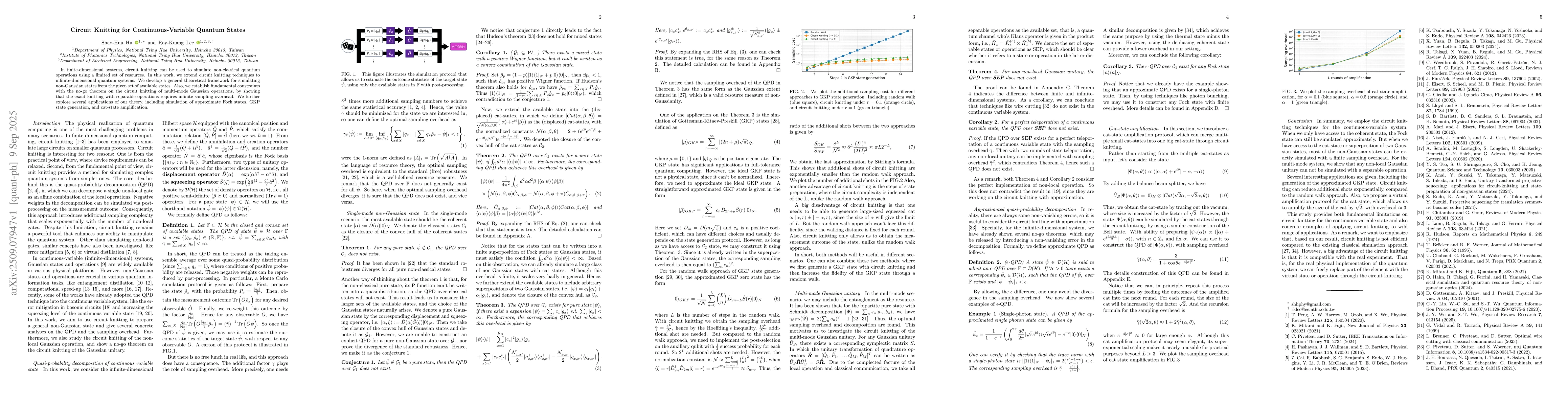 In finite-dimensional systems, circuit knitting can be used to simulate non-classical quantum operations using a limited set of resources. In this work, we extend circuit knitting techniques to infinite-dimensional quantum systems. We develop a general theoretical framework for simulating non-Gaussian states from the given set of available states. Also, we establish fundamental constraints with the no-go theorem on the circuit knitting of multi-mode Gaussian operations, by showing that the exact knitting with separable operations requires infinite sampling overhead. We further explore several applications of our theory, including simulation of approximate Fock states, GKP state generation, and cat-state amplification.