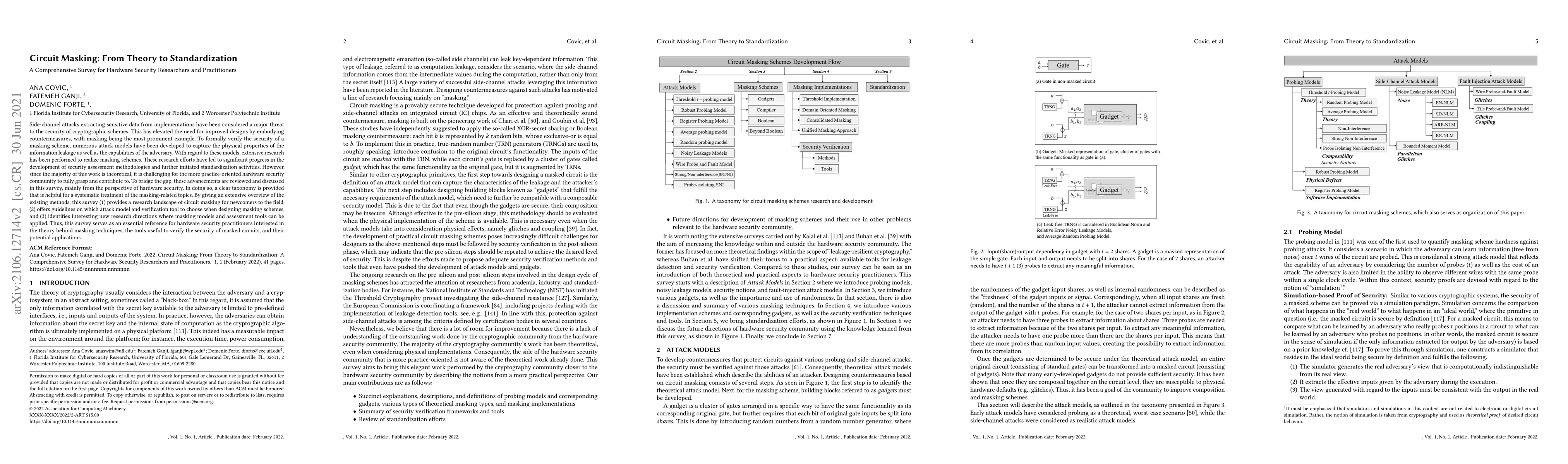 This survey comprehensively reviews circuit masking techniques to address side-channel attacks, providing a clear taxonomy for hardware security practitioners. It offers guidelines on selecting appropriate attack models and verification tools for designing secure masking schemes and identifies promising new research directions.