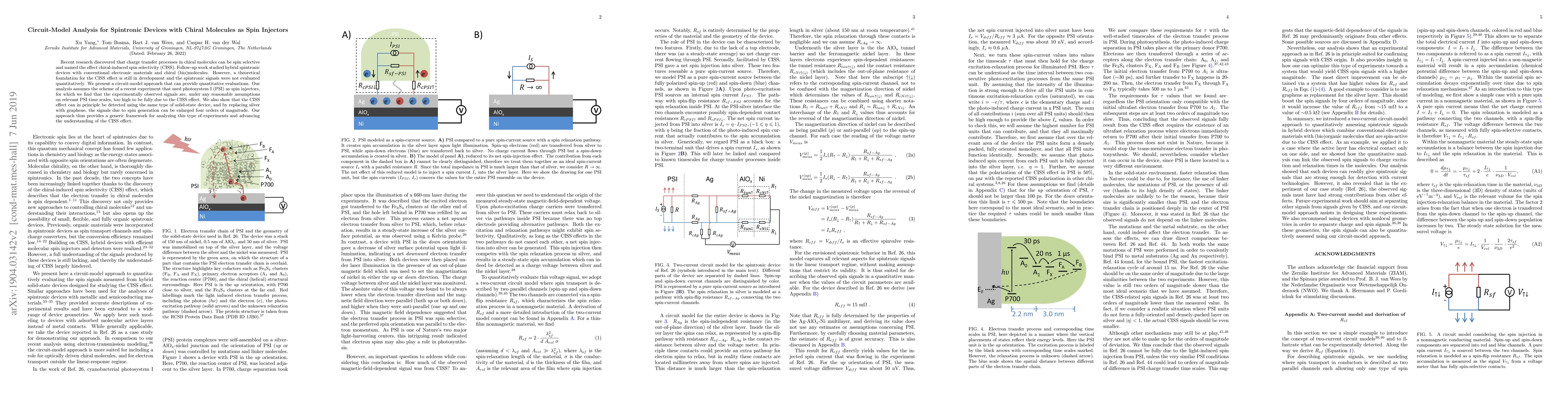 Recent research discovered that charge transfer processes in chiral molecules can be spin selective and named the effect chiral-induced spin selectivity (CISS). Follow-up work studied hybrid spintronic devices with conventional electronic materials and chiral (bio)molecules. However, a theoretical foundation for the CISS effect is still in development and the spintronic signals were not evaluated quantitatively. We present a circuit-model approach that can provide quantitative evaluations. Our analysis assumes the scheme of a recent experiment that used photosystem~I (PSI) as spin injectors, for which we find that the experimentally observed signals are, under any reasonable assumptions on relevant PSI time scales, too high to be fully due to the CISS effect. We also show that the CISS effect can in principle be detected using the same type of solid-state device, and by replacing silver with graphene, the signals due to spin generation can be enlarged four orders of magnitude. Our approach thus provides a generic framework for analyzing this type of experiments and advancing the understanding of the CISS effect.