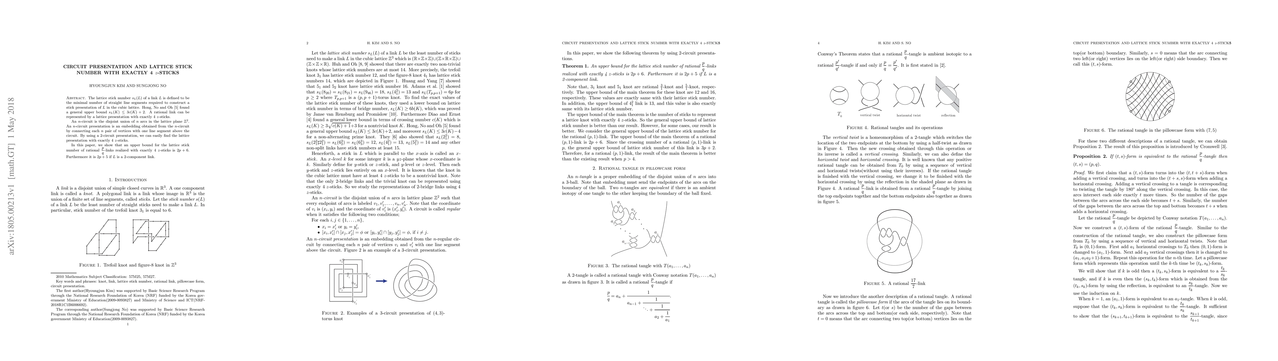 The lattice stick number $s_L(L)$ of a link $L$ is defined to be the minimal number of straight line segments required to construct a stick presentation of $L$ in the cubic lattice. Hong, No and Oh found a general upper bound $s_L(K) \leq 3 c(K) +2$. A rational link can be represented by a lattice presentation with exactly 4 $z$-sticks. An $n$-circuit is the disjoint union of $n$ arcs in the lattice plane $\mathbb{Z}^2$. An $n$-circuit presentation is an embedding obtained from the $n$-circuit by connecting each $n$ pair of vertices with one line segment above the circuit. By using a 2-circuit presentation, we can easily find the lattice presentation with exactly 4 $z$-sticks. In this paper, we show that an upper bound for the lattice stick number of rational $\dfrac{p}{q}$-links realized with exactly 4 $z$-sticks is $2p+6$. Furthermore it is $2p+5$ if $L$ is a 2-component link.