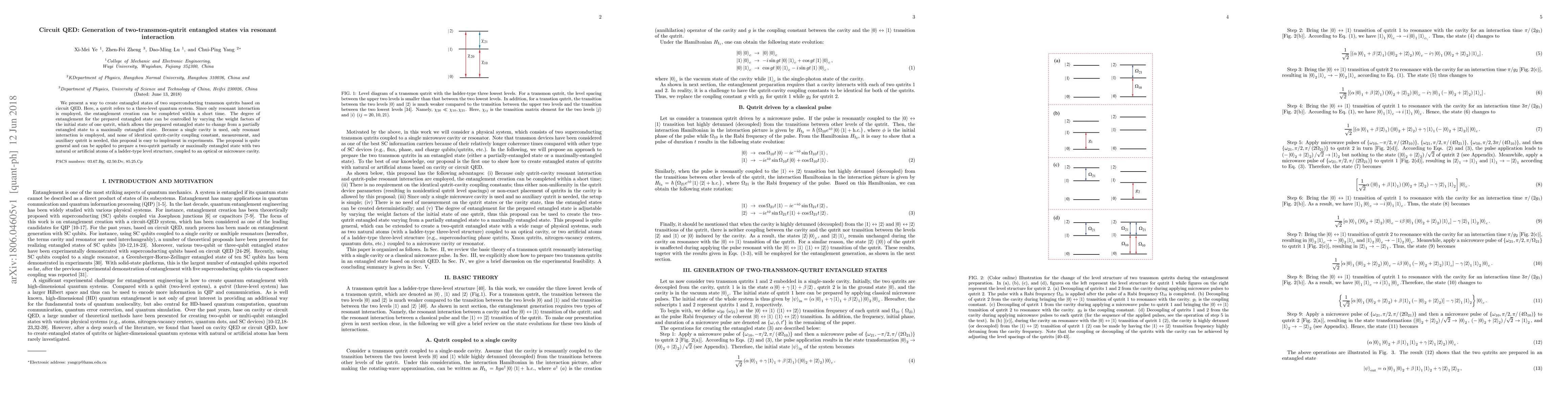 This paper proposes a method to generate entangled states of two superconducting transmon qutrits using resonant interaction in circuit QED, allowing control over the degree of entanglement by adjusting initial state parameters. The simplicity of the resonant interaction and single cavity setup makes the method easy to implement experimentally.