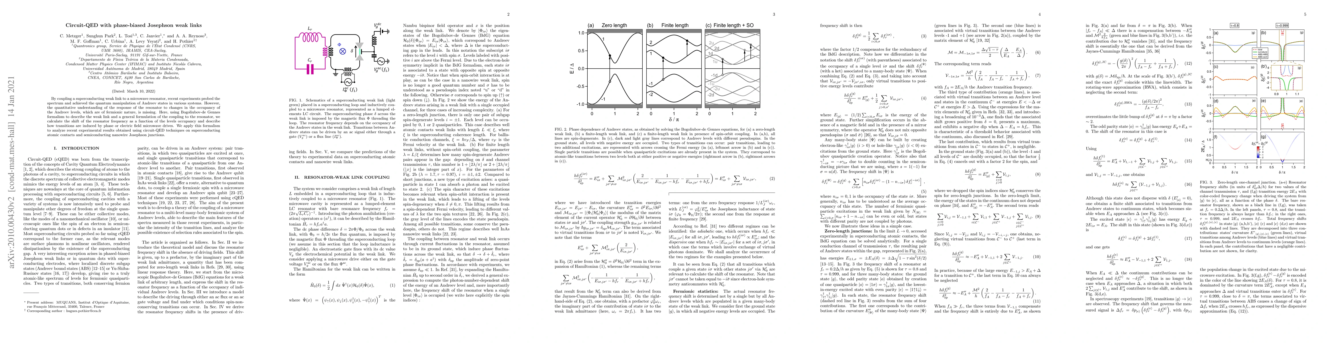 By coupling a superconducting weak link to a microwave resonator, recent experiments probed the spectrum and achieved the quantum manipulation of Andreev states in various systems. However, the quantitative understanding of the response of the resonator to changes in the occupancy of the Andreev levels, which are of fermionic nature, is missing. Here, using Bogoliubov-de Gennes formalism to describe the weak link and a general formulation of the coupling to the resonator, we calculate the shift of the resonator frequency as a function of the levels occupancy and describe how transitions are induced by phase or electric field microwave drives. We apply this formalism to analyze recent experimental results obtained using circuit-QED techniques on superconducting atomic contacts and semiconducting nanowire Josephson junctions.