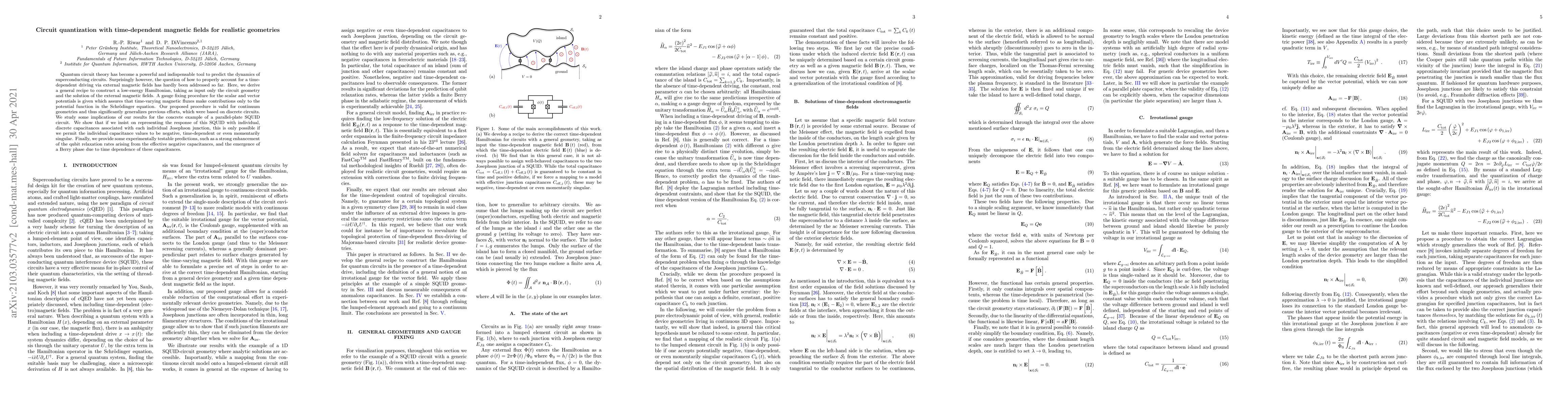 Quantum circuit theory has become a powerful and indispensable tool to predict the dynamics of superconducting circuits. Surprisingly however, the question of how to properly account for a time-dependent driving via external magnetic fields has hardly been addressed so far. Here, we derive a general recipe to construct a low-energy Hamiltonian, taking as input only the circuit geometry and the solution of the external magnetic fields. A gauge fixing procedure for the scalar and vector potentials is given which assures that time-varying magnetic fluxes make contributions only to the potential function in the Schr\"odinger equation. Our proposed procedure is valid for continuum geometries and thus significantly generalizes previous efforts, which were based on discrete circuits. We study some implications of our results for the concrete example of a parallel-plate SQUID circuit. We show that if we insist on representing the response of this SQUID with individual, discrete capacitances associated with each individual Josephson junction, this is only possible if we permit the individual capacitance values to be negative, time-dependent or even momentarily singular. Finally, we provide some experimentally testable predictions, such as a strong enhancement of the qubit relaxation rates arising from the effective negative capacitances, and the emergence of a Berry phase due to time dependence of these capacitances.