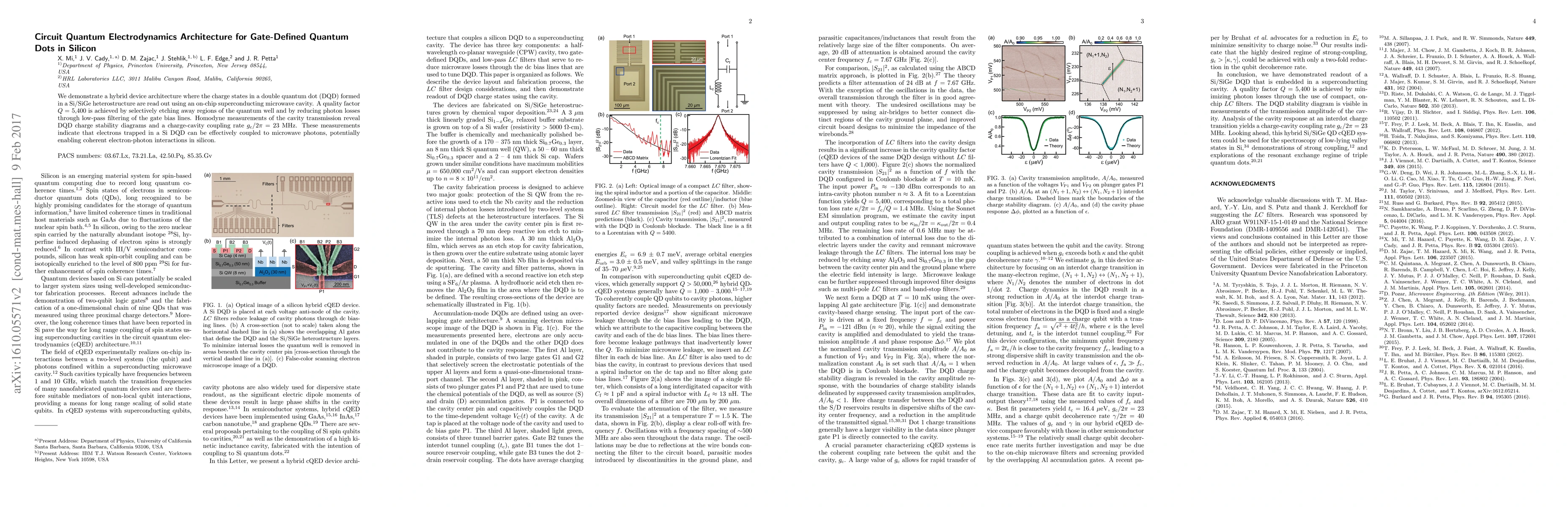 This paper presents a hybrid silicon-based device architecture that uses a superconducting microwave cavity to read out charge states in a double quantum dot, achieving a high quality factor of 5,400. The study demonstrates effective coupling between electrons in a silicon quantum dot and microwave photons at a rate of 23 MHz, indicating potential for coherent electron-photon interactions in silicon.