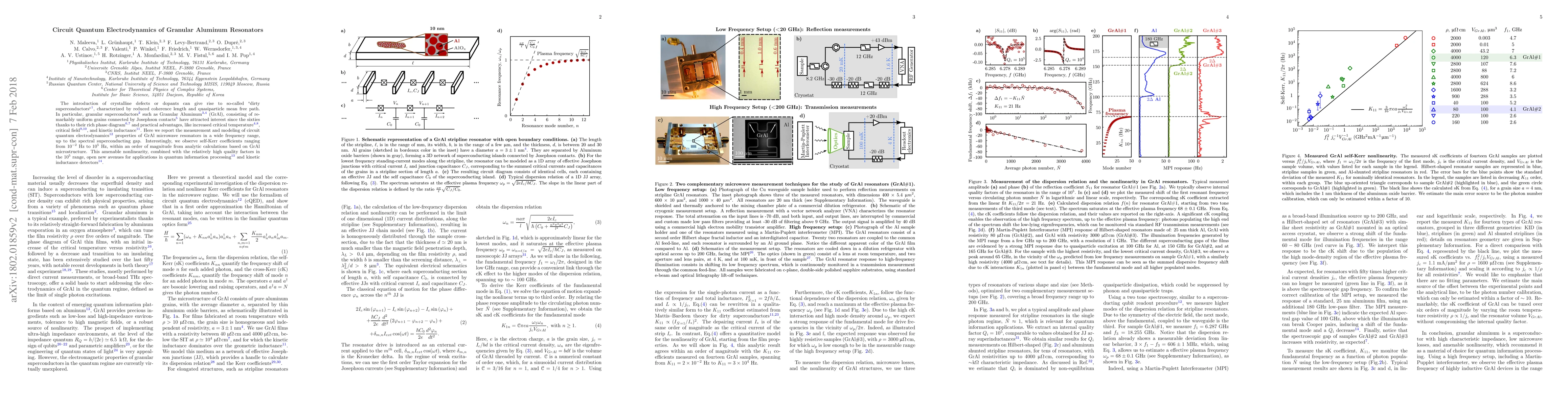 The introduction of crystalline defects or dopants can give rise to so-called "dirty superconductors", characterized by reduced coherence length and quasiparticle mean free path. In particular, granular superconductors such as Granular Aluminum (GrAl), consisting of remarkably uniform grains connected by Josephson contacts have attracted interest since the sixties thanks to their rich phase diagram and practical advantages, like increased critical temperature, critical field, and kinetic inductance. Here we report the measurement and modeling of circuit quantum electrodynamics properties of GrAl microwave resonators in a wide frequency range, up to the spectral superconducting gap. Interestingly, we observe self-Kerr coefficients ranging from $10^{-2}$ Hz to $10^5$ Hz, within an order of magnitude from analytic calculations based on GrAl microstructure. This amenable nonlinearity, combined with the relatively high quality factors in the $10^5$ range, open new avenues for applications in quantum information processing and kinetic inductance detectors.