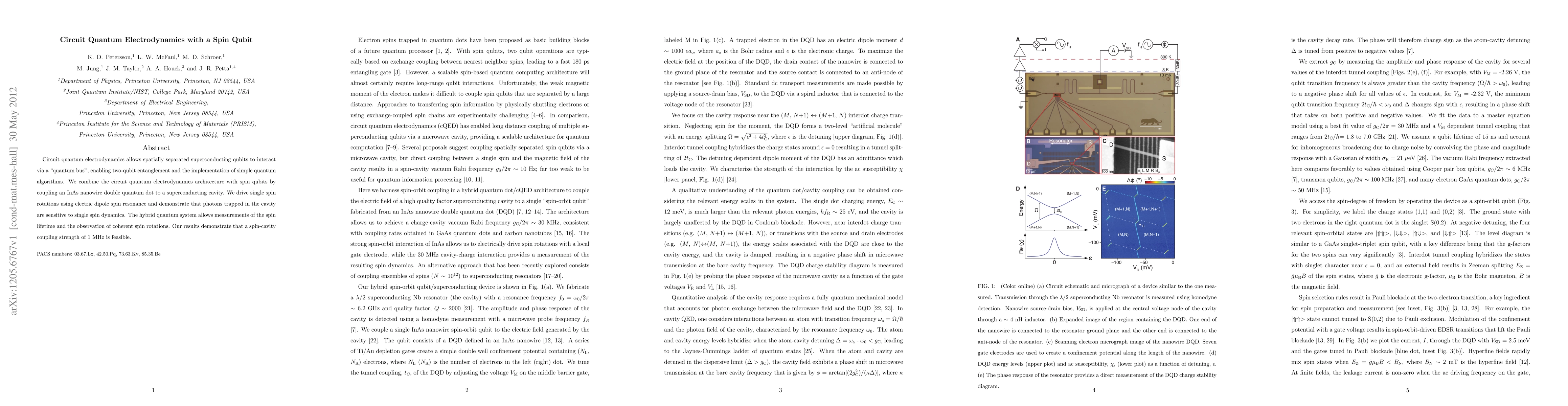 This research integrates circuit quantum electrodynamics with spin qubits, coupling an InAs nanowire double quantum dot to a superconducting cavity to demonstrate spin-photon interactions and coherent spin rotations, achieving a spin-cavity coupling strength of 1 MHz. The study enables measurements of spin lifetime and showcases the potential for hybrid quantum systems.