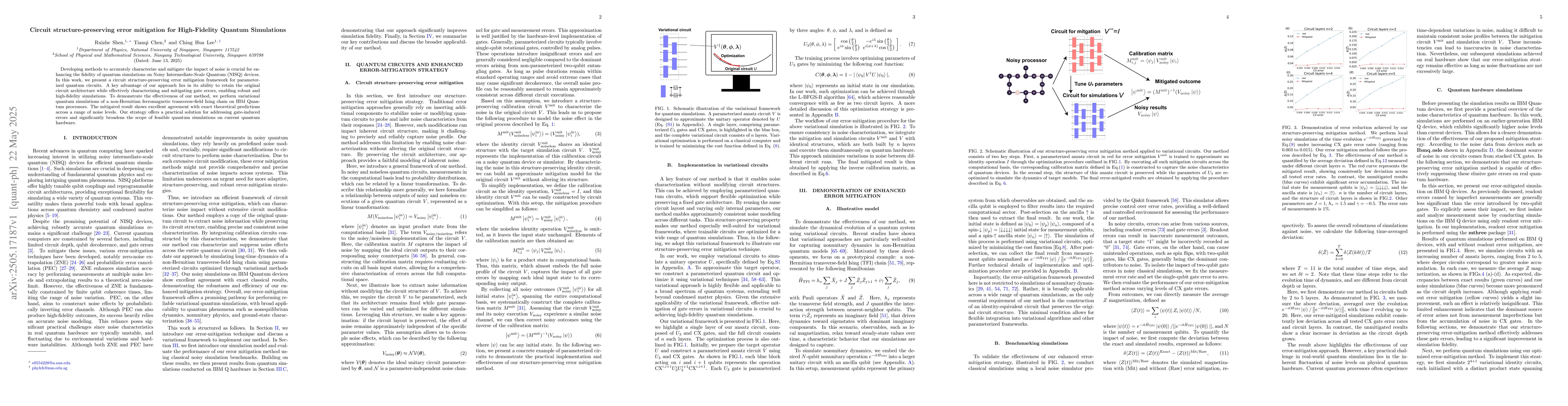 Researchers developed a method to accurately simulate quantum circuits with high fidelity on noisy devices, retaining the original circuit structure while mitigating gate errors. The approach showed excellent agreement with exact predictions in simulations of a specific model.