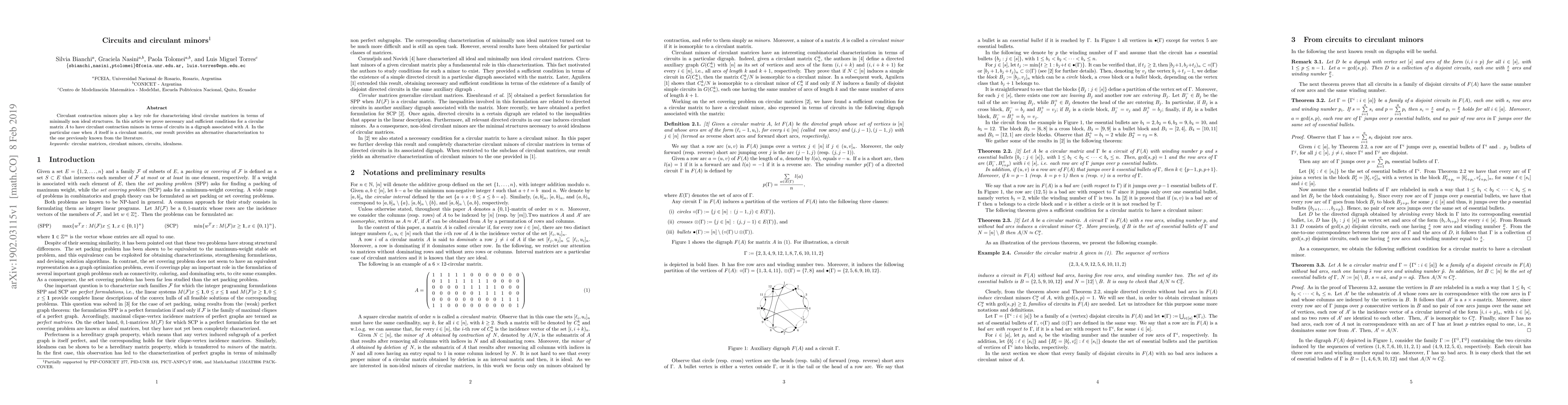 Circulant contraction minors play a key role for characterizing ideal circular matrices in terms of minimally non ideal structures. In this article we prove necessary and sufficient conditions for a circular matrix $A$ to have circulant contraction minors in terms of circuits in a digraph associated with $A$. In the particular case when $A$ itself is a circulant matrix, our result provides an alternative characterization to the one previously known from the literature.