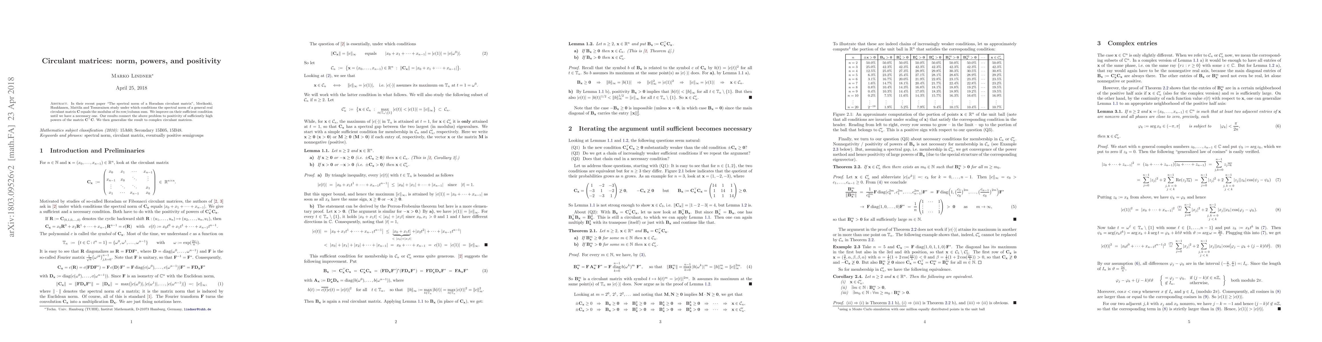 In their recent paper "The spectral norm of a Horadam circulant matrix", Merikoski, Haukkanen, Mattila and Tossavainen study under which conditions the spectral norm of a general real circulant matrix ${\bf C}$ equals the modulus of its row/column sum. We improve on their sufficient condition until we have a necessary one. Our results connect the above problem to positivity of sufficiently high powers of the matrix ${\bf C^\top C}$. We then generalize the result to complex circulant matrices.
