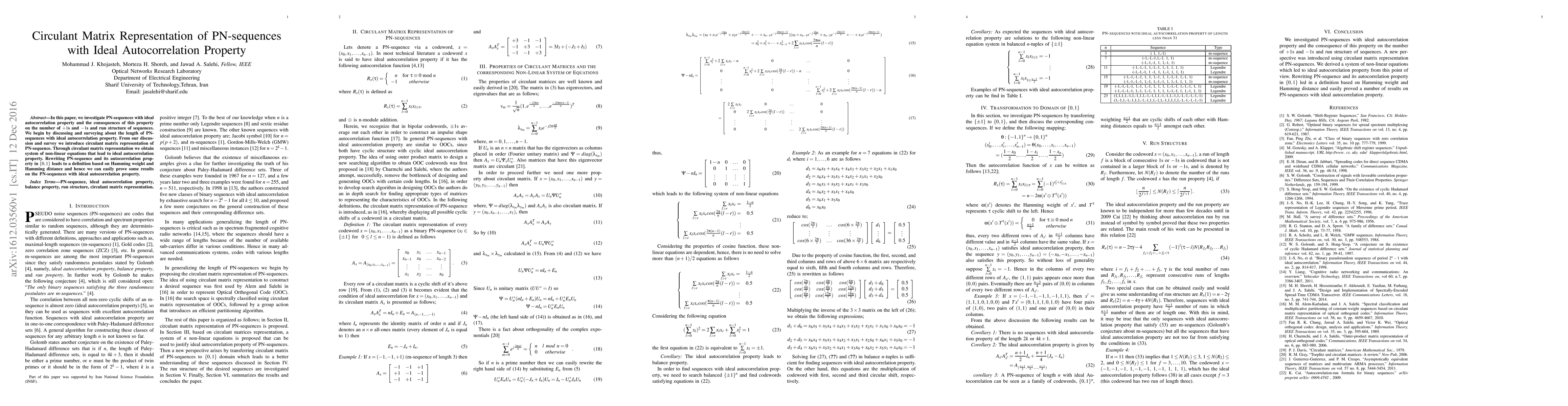 In this paper, we investigate PN-sequences with ideal autocorrelation property and the consequences of this property on the number of +1s and -1s and run structure of sequences. We begin by discussing and surveying about the length of PNsequences with ideal autocorrelation property. From our discussion and survey we introduce circulant matrix representation of PN-sequence. Through circulant matrix representation we obtain system of non-linear equations that lead to ideal autocorrelation property. Rewriting PN-sequence and its autocorrelation property in {0,1} leads to a definition based on Hamming weight and Hamming distance and hence we can easily prove some results on the PN-sequences with ideal autocorrelation property.