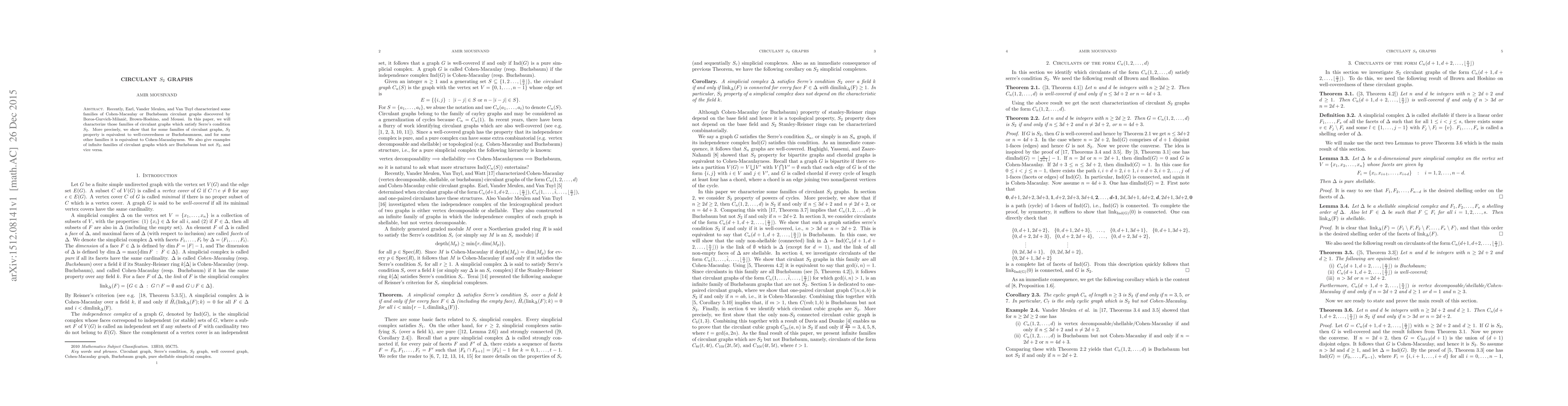 This paper characterizes families of circulant graphs that satisfy Serre's condition $S_2$. It shows that for some families, $S_2$ is equivalent to well-coveredness or Buchsbaumness, while for others, it corresponds to Cohen-Macaulayness, and provides examples of infinite families that are Buchsbaum but not $S_2$ or vice versa.