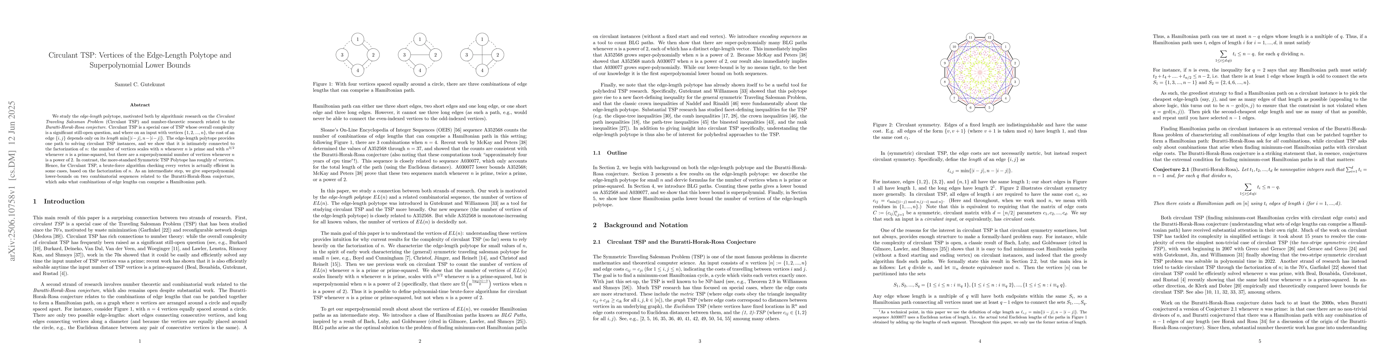 We study the edge-length polytope, motivated both by algorithmic research on the Circulant Traveling Salesman Problem (Circulant TSP) and number-theoretic research related to the Buratti-Horak-Rosa conjecture. Circulant TSP is a special case of TSP whose overall complexity is a significant still-open question, and where on an input with vertices $\{1, 2, ..., n\}$, the cost of an edge $\{i, j\}$ depends only on its length $\min\{|i-j|, n-|i-j|\}$. The edge-length polytope provides one path to solving circulant TSP instances, and we show that it is intimately connected to the factorization of $n$: the number of vertices scales with $n$ whenever $n$ is prime and with $n^{3/2}$ whenever $n$ is a prime-squared, but there are a superpolynomial number of vertices whenever $n$ is a power of 2. In contrast, the more-standard Symmetric TSP Polytope has roughly $n!$ vertices. Hence, for Circulant TSP, a brute-force algorithm checking every vertex is actually efficient in some cases, based on the factorization of $n$. As an intermediate step, we give superpolynomial lower-bounds on two combinatorial sequences related to the Buratti-Horak-Rosa conjecture, which asks what combinations of edge lengths can comprise a Hamiltonian path.