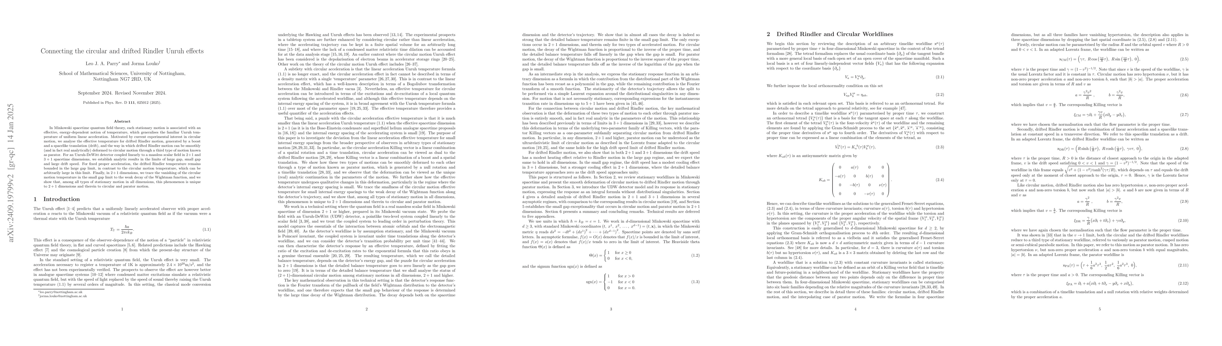 In Minkowski spacetime quantum field theory, each stationary motion is associated with an effective, energy-dependent notion of temperature, which generalises the familiar Unruh temperature of uniform linear acceleration. Motivated by current experimental interest in circular motion, we analyse the effective temperature for drifted Rindler motion, generated by a boost and a spacelike translation (drift), and the way in which drifted Rindler motion can be smoothly deformed to circular motion through a third type of motion known as parator. For an Unruh-DeWitt detector coupled linearly to a massless scalar field in 2+1 and 3+1 spacetime dimensions, we establish analytic results in the limits of large gap, small gap and large drift speed. For fixed proper acceleration, the drifted Rindler temperature remains bounded in the large gap limit, in contrast to the circular motion temperature, which can be arbitrarily large in this limit. Finally, in 2+1 dimensions, we trace the vanishing of the circular motion temperature in the small gap limit to the weak decay of the Wightman function, and we show that, among all types of stationary motion in all dimensions, this phenomenon is unique to 2+1 dimensions and therein to circular and parator motion.