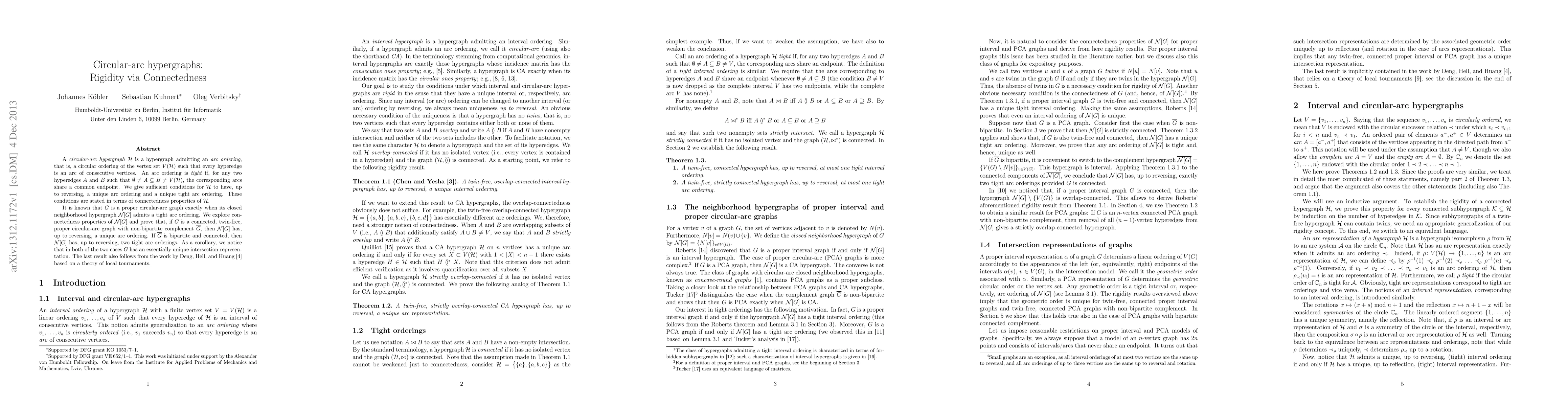 This paper explores circular-arc hypergraphs, finding conditions for unique arc orderings based on connectedness properties of the closed neighborhood hypergraph.