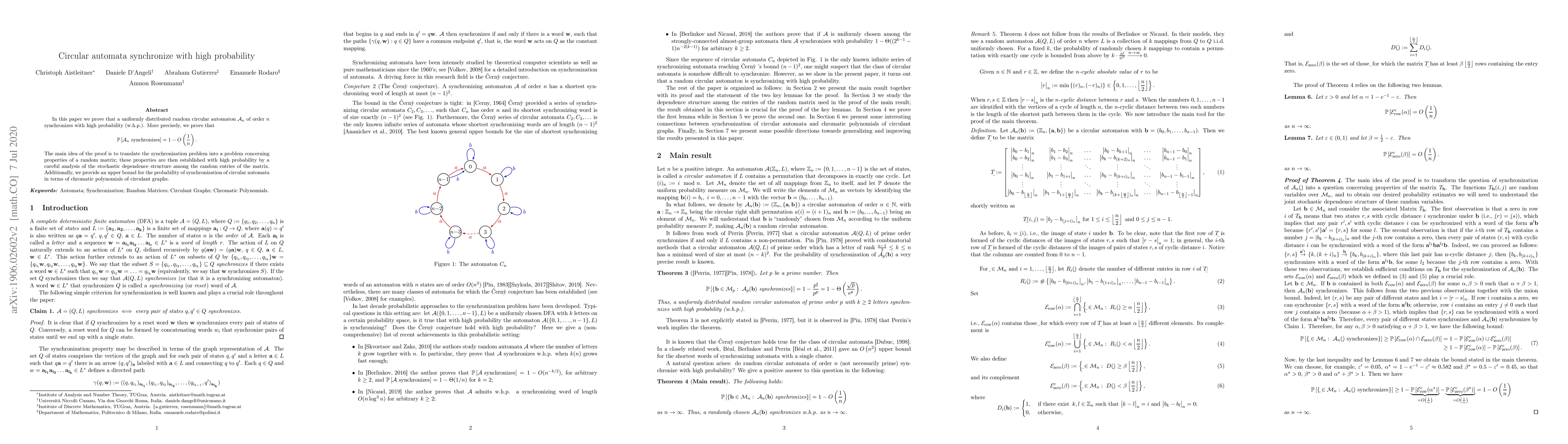 A new study proves that a type of mathematical model called circular automata synchronize with very high probability as the number of components increases. The researchers used advanced statistical methods to reach this conclusion.