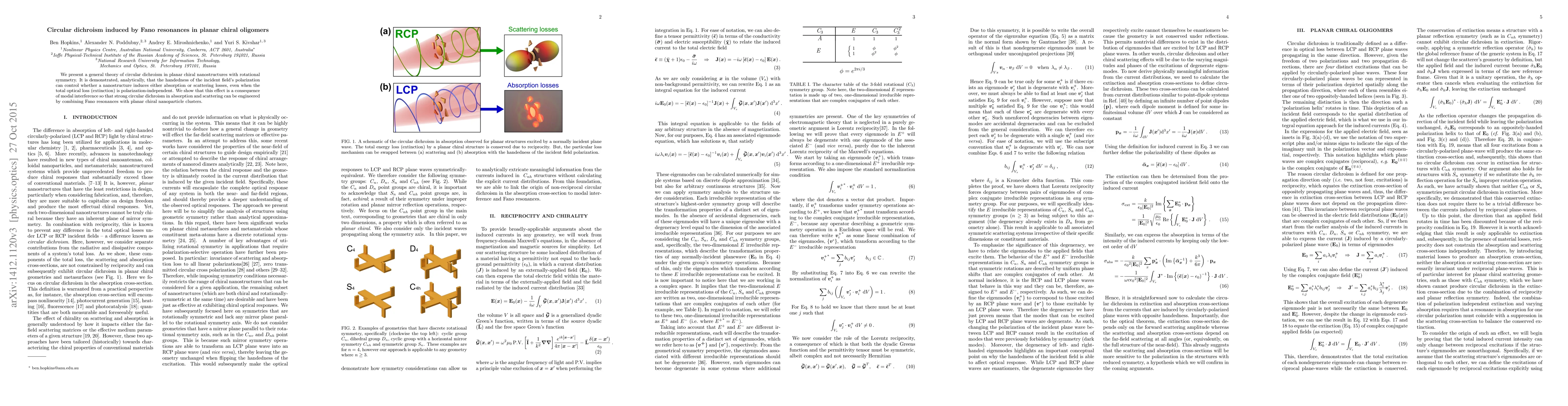 This paper develops a theoretical framework for circular dichroism in chiral nanostructures, showing how polarization-dependent field interactions can control absorption and scattering losses via modal interference, enabled by Fano resonances in chiral nanoparticle clusters.