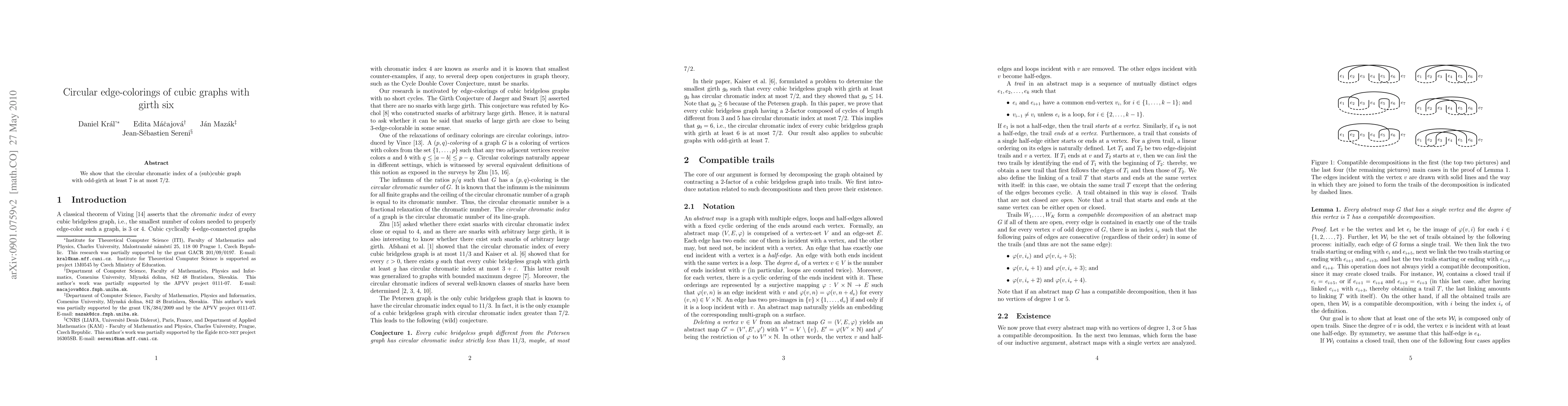 We show that the circular chromatic index of a (sub)cubic graph with girth at least six is at most 7/2.