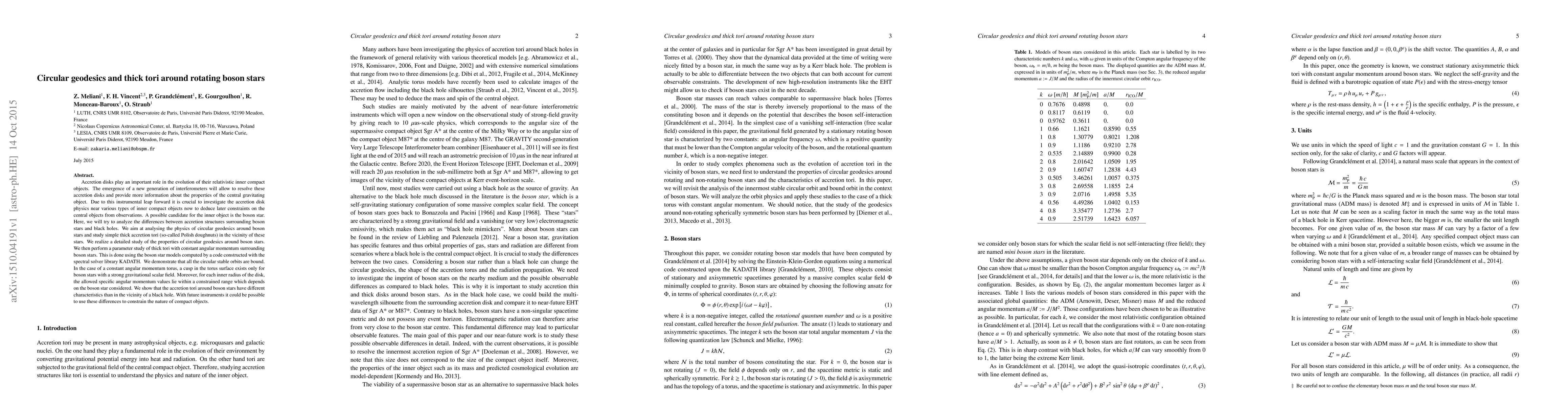 This paper investigates the accretion disk physics around rotating boson stars, comparing it to that around black holes. It analyzes circular geodesics and thick tori (Polish doughnuts) around boson stars, demonstrating distinct characteristics such as stable orbits and specific angular momentum constraints, which could potentially help in identifying the nature of compact objects with future observational instruments.