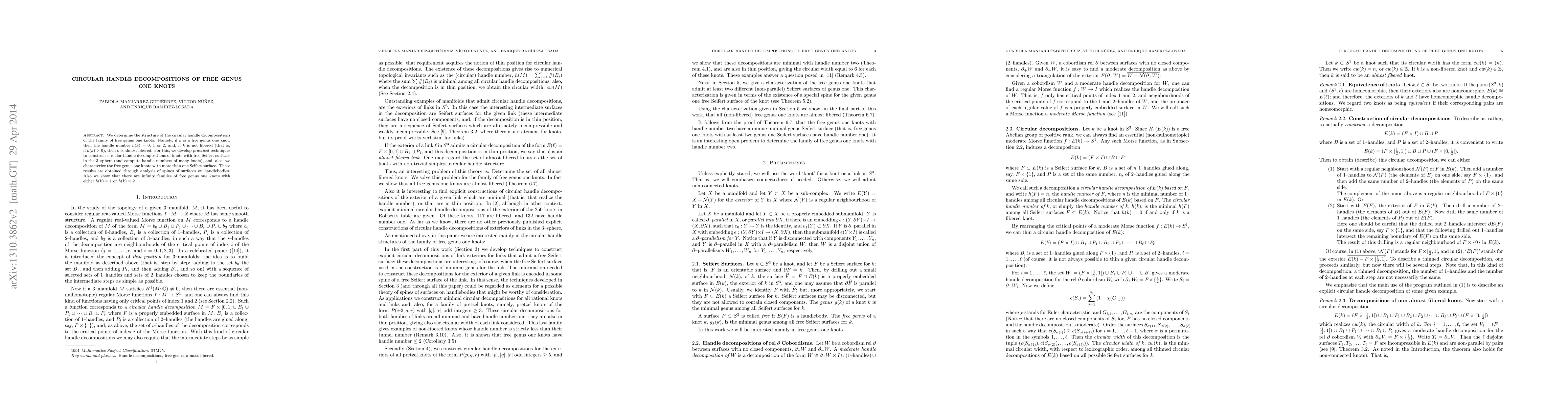This paper investigates circular handle decompositions of free genus one knots, establishing that their handle number is either 0, 1, or 2, and characterizing almost fibered knots. It develops techniques for constructing these decompositions and identifies infinite families of such knots.