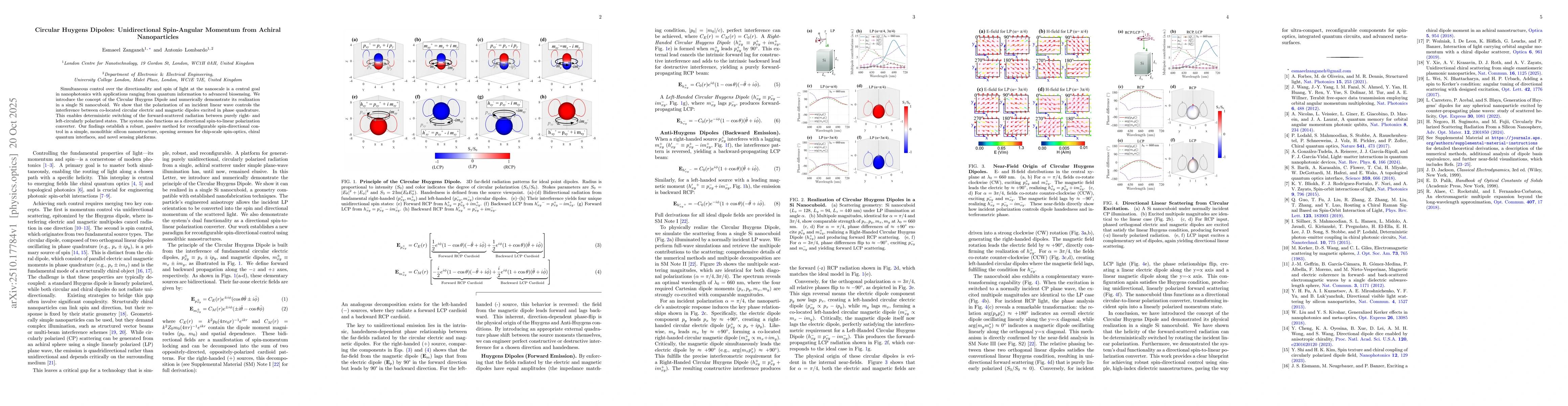 Introduces a unified theoretical framework connecting circular, chiral, and Huygens dipole concepts, demonstrating their equivalence in achieving spin-angular momentum emission.