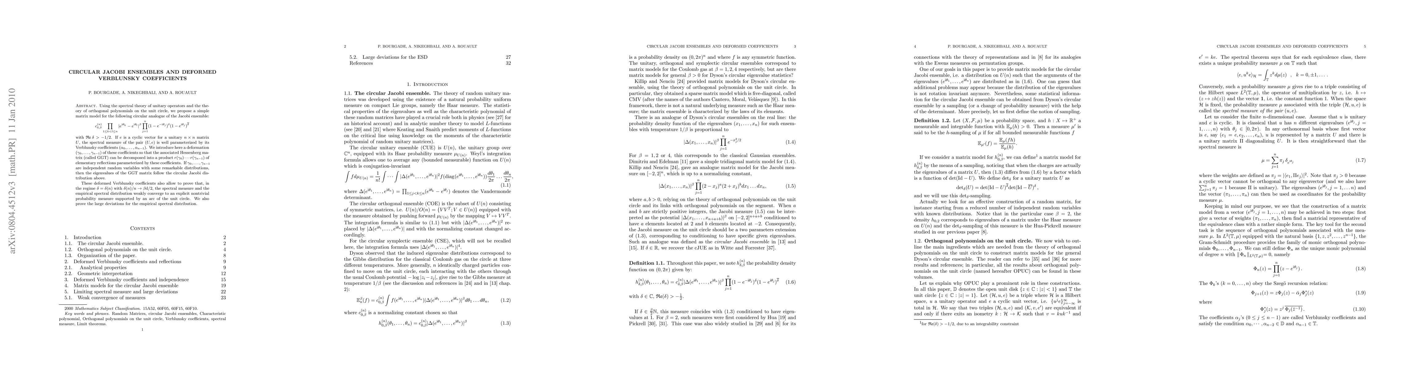 following circular analogue of the Jacobi ensemble: $$c_{\delta,\beta}^{(n)}