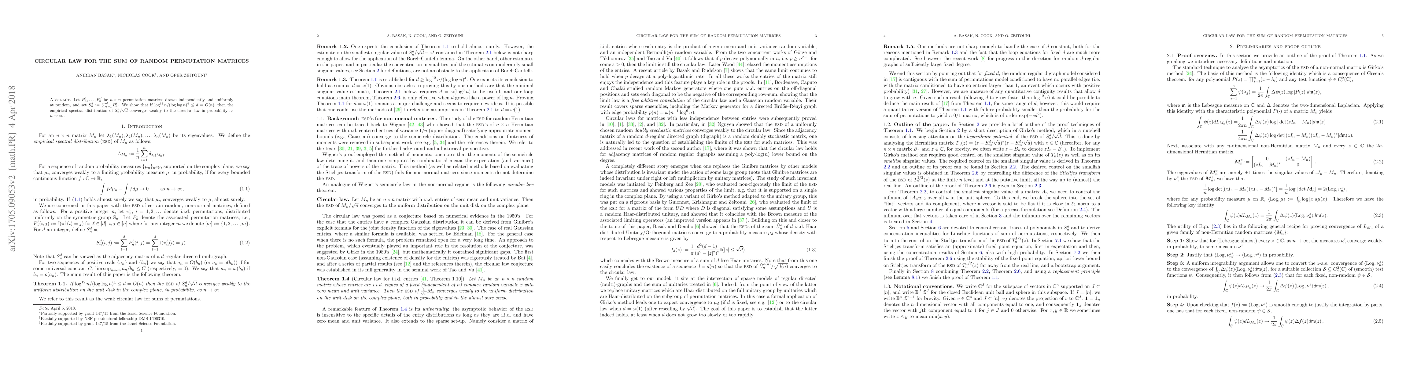 Let $P_n^1,\dots, P_n^d$ be $n\times n$ permutation matrices drawn independently and uniformly at random, and set $S_n^d:=\sum_{\ell=1}^d P_n^\ell$. We show that if $\log^{12}n/(\log \log n)^{4} \le d=O(n)$, then the empirical spectral distribution of $S_n^d/\sqrt{d}$ converges weakly to the circular law in probability as $n \to \infty$.