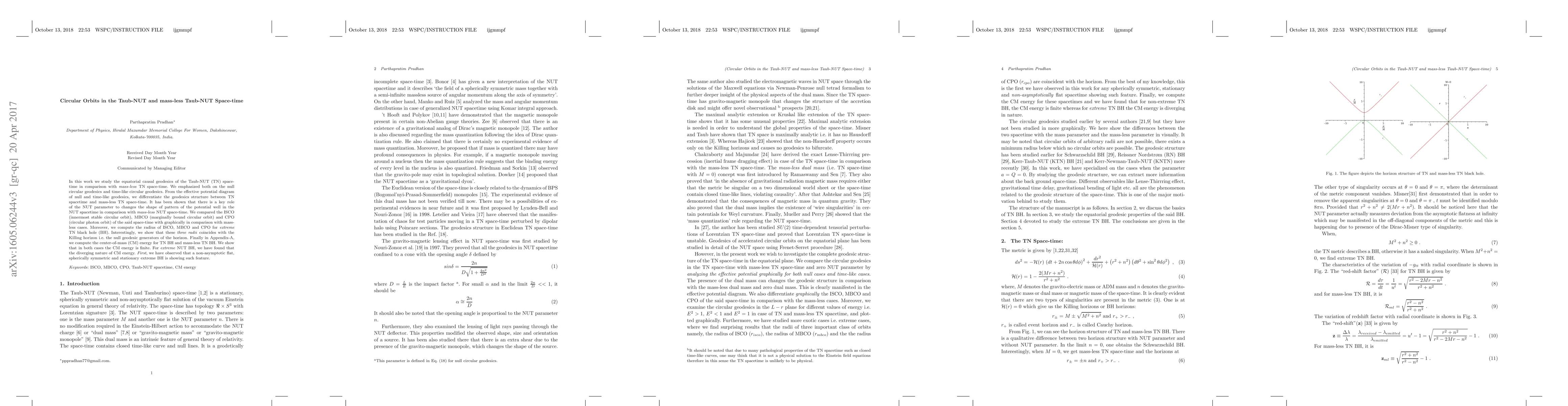 This paper investigates the circular orbits in Taub-NUT and mass-less Taub-NUT spacetimes, comparing null and time-like geodesics. It finds that the NUT parameter significantly alters the potential well's shape, leading to different ISCO, MBCO, and CPO radii, with these coinciding with the Killing horizon for extreme TN black holes. The study also reveals finite CM energy for TN and mass-less TN BHs, but a divergent CM energy for extreme NUT BHs.