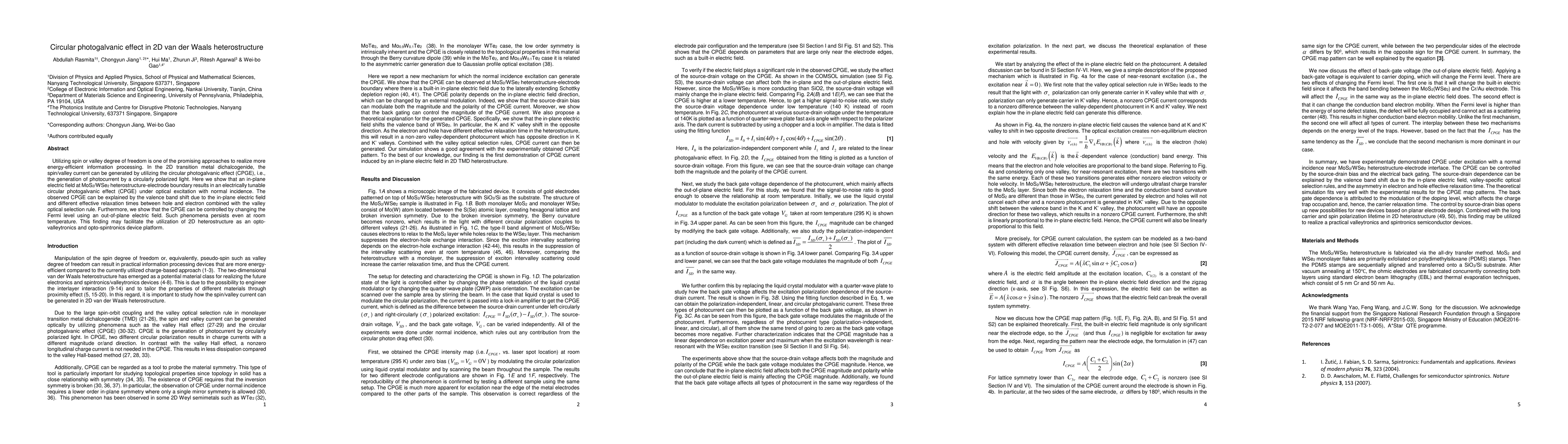 The study reveals an electrically tunable circular photogalvanic effect in a 2D van der Waals heterostructure composed of MoS2 and WSe2, which can be controlled by in-plane and out-of-plane electric fields, potentially enabling opto-valleytronics and opto-spintronics applications. The effect persists at room temperature, indicating practical device potential.