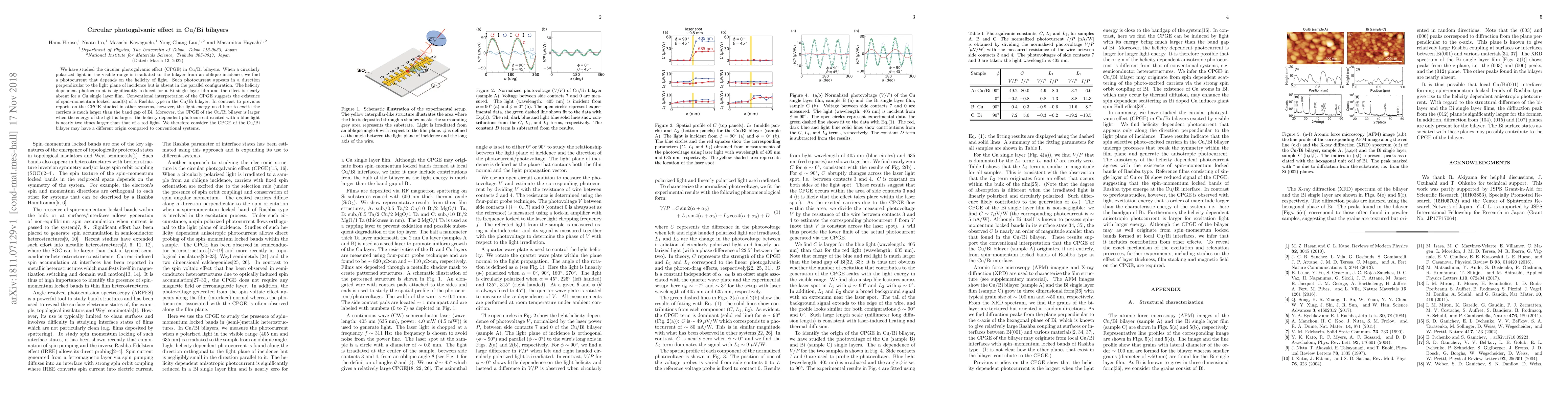 Researchers studied the circular photogalvanic effect in Cu/Bi bilayers and found a helicity-dependent photocurrent that is larger when light energy increases, contradicting conventional interpretations.