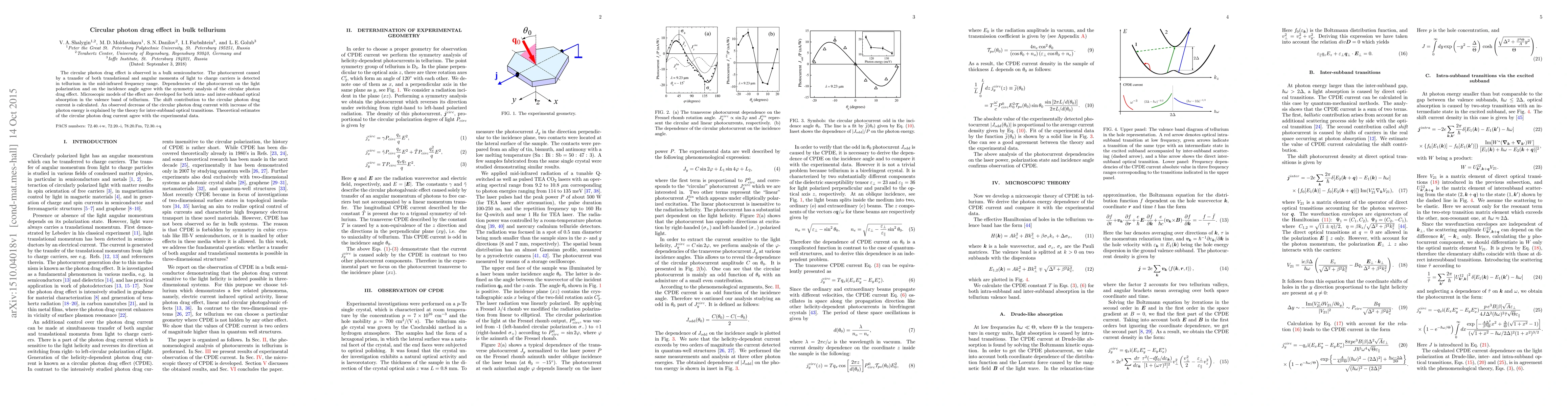 The circular photon drag effect is observed in bulk tellurium, where photocurrent arises from light's transfer of both translational and angular momentum to charge carriers, particularly in the mid-infrared range. Theoretical models explain the observed decrease in current with increasing photon energy and match experimental data.
