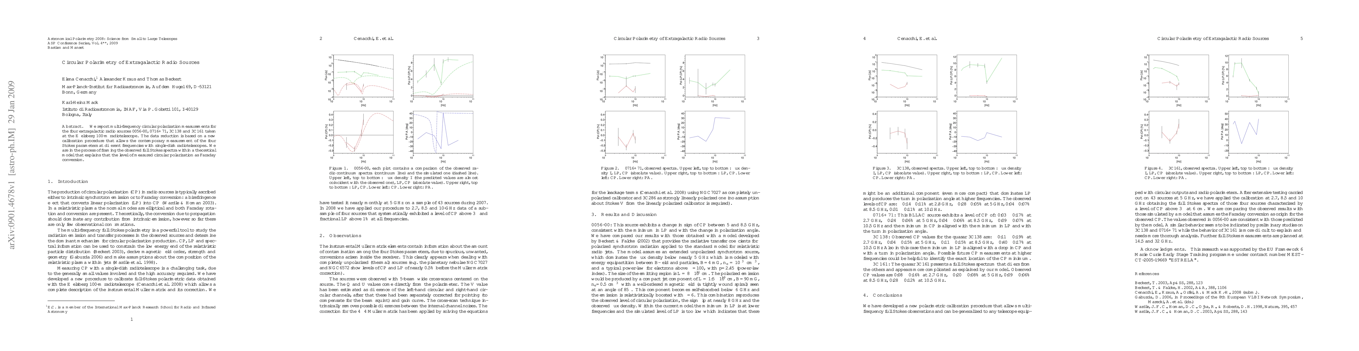 We report multi-frequency circular polarization measurements for the four extragalactic radio sources 0056-00, 0716+71, 3C138 and 3C161 taken at the Effelsberg 100-m radiotelescope. The data reduction is based on a new calibration procedure that allows the contemporary measurement of the four Stokes parameters at different frequencies with single-dish radiotelescopes. We are in the process of framing the observed full Stokes spectra within a theoretical model that explains that the level of measured circular polarization as Faraday conversion.