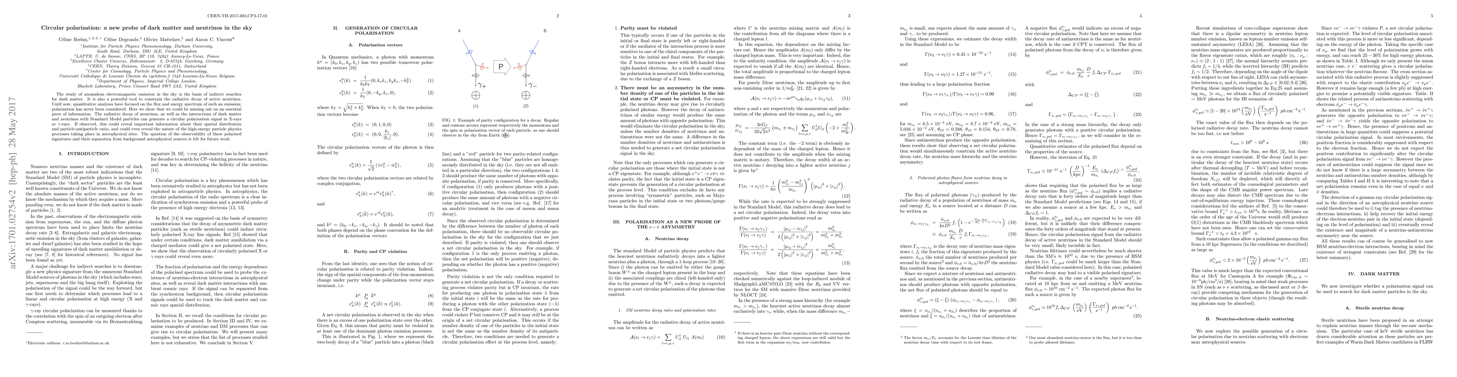 The study of anomalous electromagnetic emission in the sky is the basis of indirect searches for dark matter. It is also a powerful tool to constrain the radiative decay of active neutrinos. Until now, quantitative analyses have focused on the flux and energy spectrum of such an emission; polarisation has never been considered. Here we show that we could be missing out on an essential piece of information. The radiative decay of neutrinos, as well as the interactions of dark matter and neutrinos with Standard Model particles can generate a circular polarisation signal in X-rays or \gamma-rays. If observed, this could reveal important information about their spatial distribution and particle-antiparticle ratio, and could even reveal the nature of the high-energy particle physics processes taking place in astrophysical sites. The question of the observability of these polarised signatures and their separation from background astrophysical sources is left for future work.