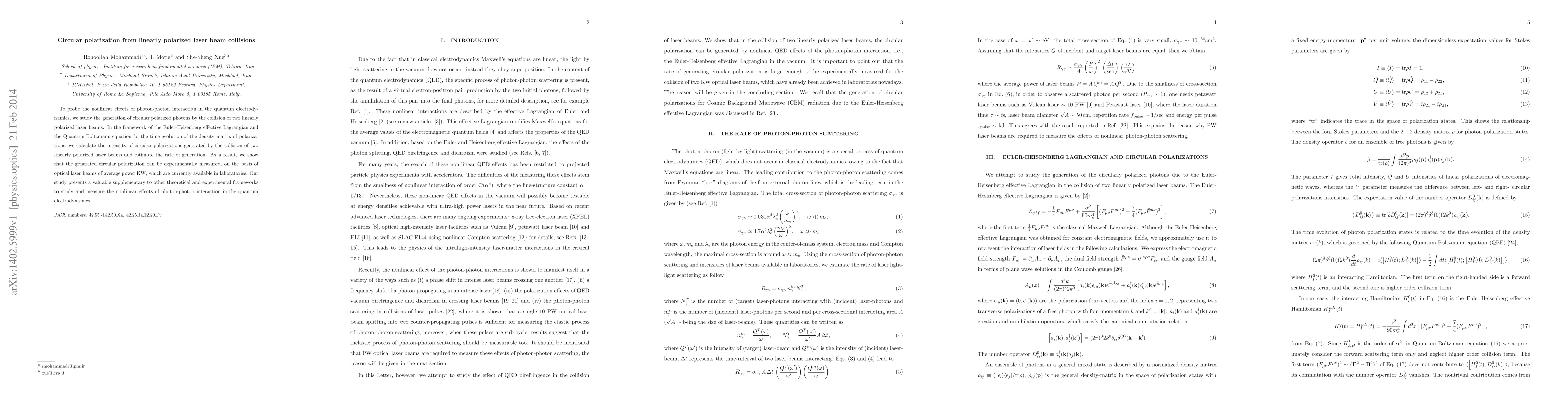 This paper investigates the nonlinear photon-photon interaction in quantum electrodynamics by generating circularly polarized photons from colliding linearly polarized laser beams. Using the Euler-Heisenberg effective Lagrangian and Quantum Boltzmann equation, it estimates the intensity and rate of this circular polarization, demonstrating its potential for experimental measurement with current laboratory-grade optical lasers.