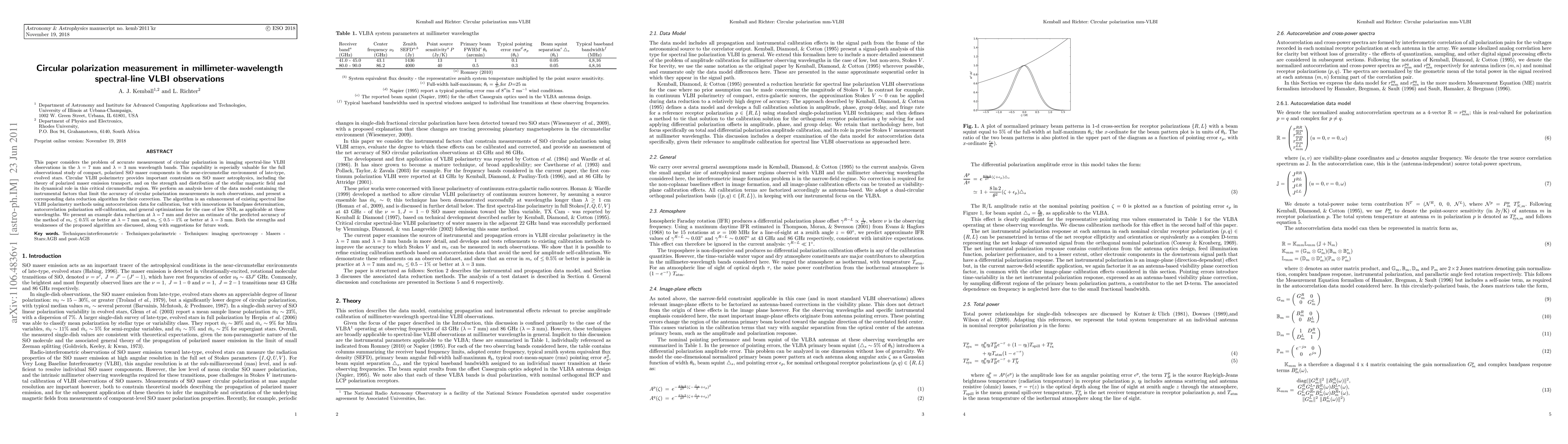This paper introduces a method to accurately measure circular polarization in millimeter-wavelength spectral-line VLBI observations, crucial for studying compact SiO maser components near late-type, evolved stars. The proposed data reduction algorithm, enhancing existing techniques with innovations in calibration and low SNR optimization, promises an accuracy of m_c < 0.5% at 7 mm and m_c < 0.5-1% at 3 mm wavelengths.