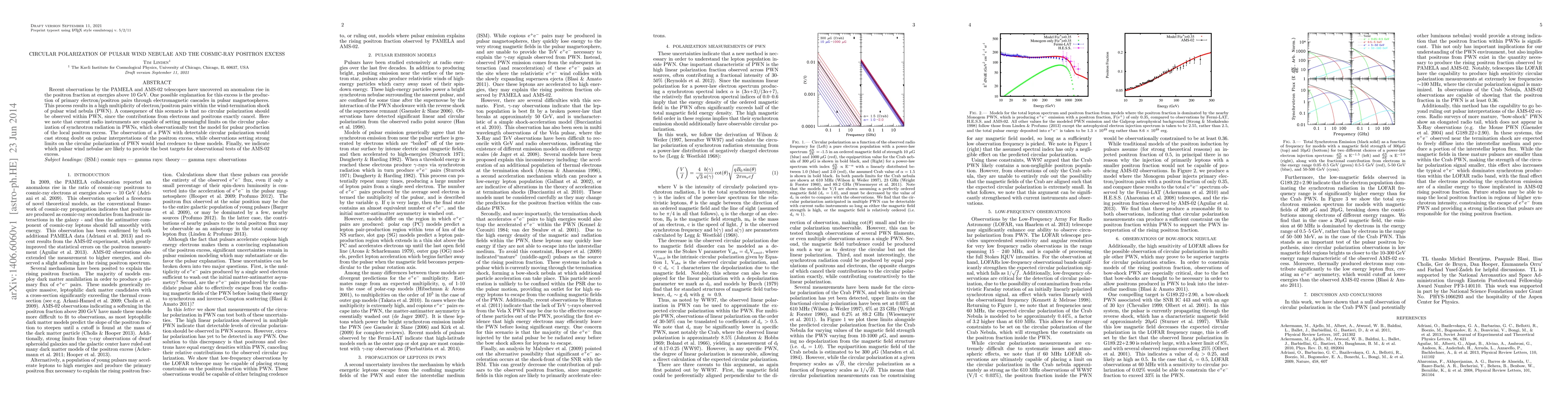 This paper explores the potential link between pulsar wind nebulae (PWN) and the observed cosmic-ray positron excess, suggesting that if pulsars produce positrons, PWN should show no circular polarization due to electron-positron pair cancellation. It concludes that current radio instruments can test this model via circular polarization measurements, with implications for the interpretation of positron excess data.