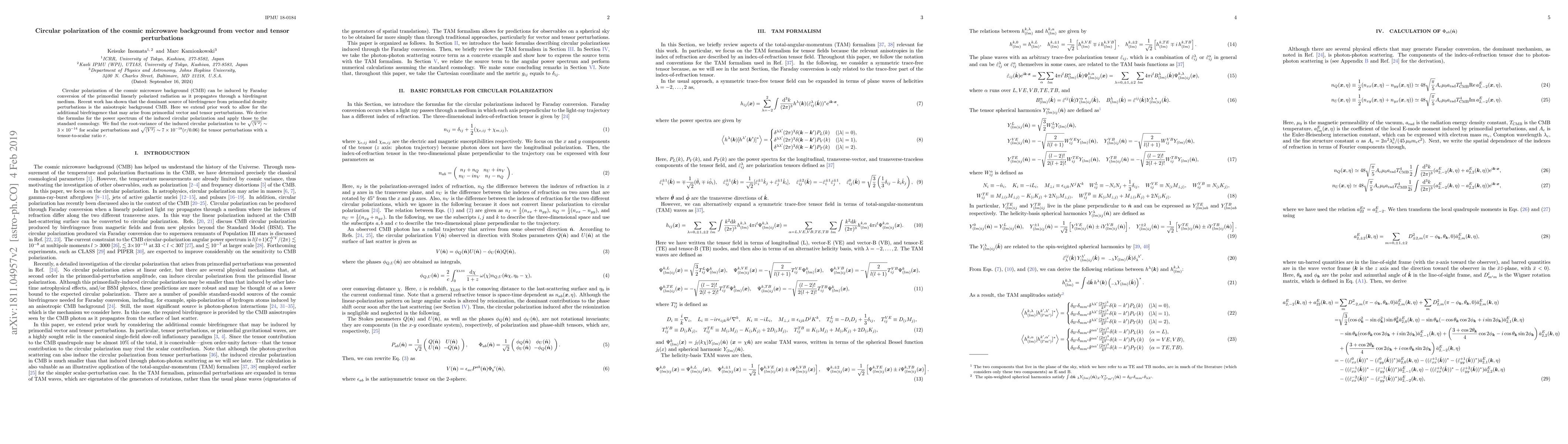 This paper investigates the circular polarization of the cosmic microwave background (CMB) induced by primordial vector and tensor perturbations, extending previous work on scalar perturbations. The derived power spectrum formulas for induced circular polarization show a root-variance of $\sqrt{<V^2>}\sim 3\times 10^{-14}$ for scalar and $\sqrt{<V^2>}\sim 7\times 10^{-18} (r/0.06)$ for tensor perturbations, with $r$ as the tensor-to-scalar ratio.
