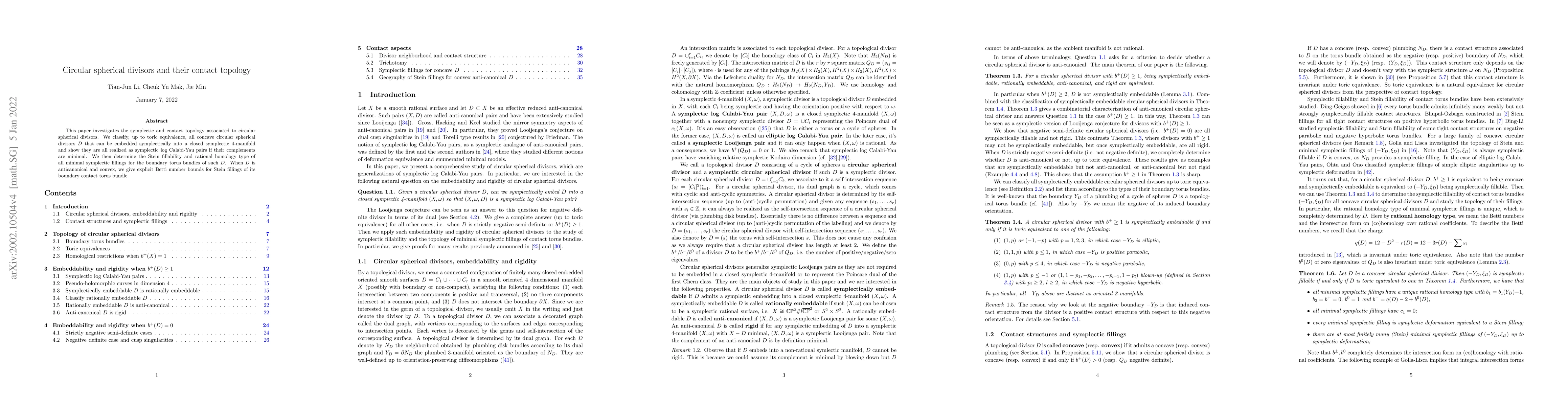 This paper investigates the symplectic and contact topology associated to circular spherical divisors. We classify, up to toric equivalence, all concave circular spherical divisors $ D $ that can be embedded symplectically into a closed symplectic 4-manifold and show they are all realized as symplectic log Calabi-Yau pairs if their complements are minimal. We then determine the Stein fillability and rational homology type of all minimal symplectic fillings for the boundary torus bundles of such $D$. When $ D $ is anticanonical and convex, we give explicit betti number bounds for Stein fillings of its boundary contact torus bundle.